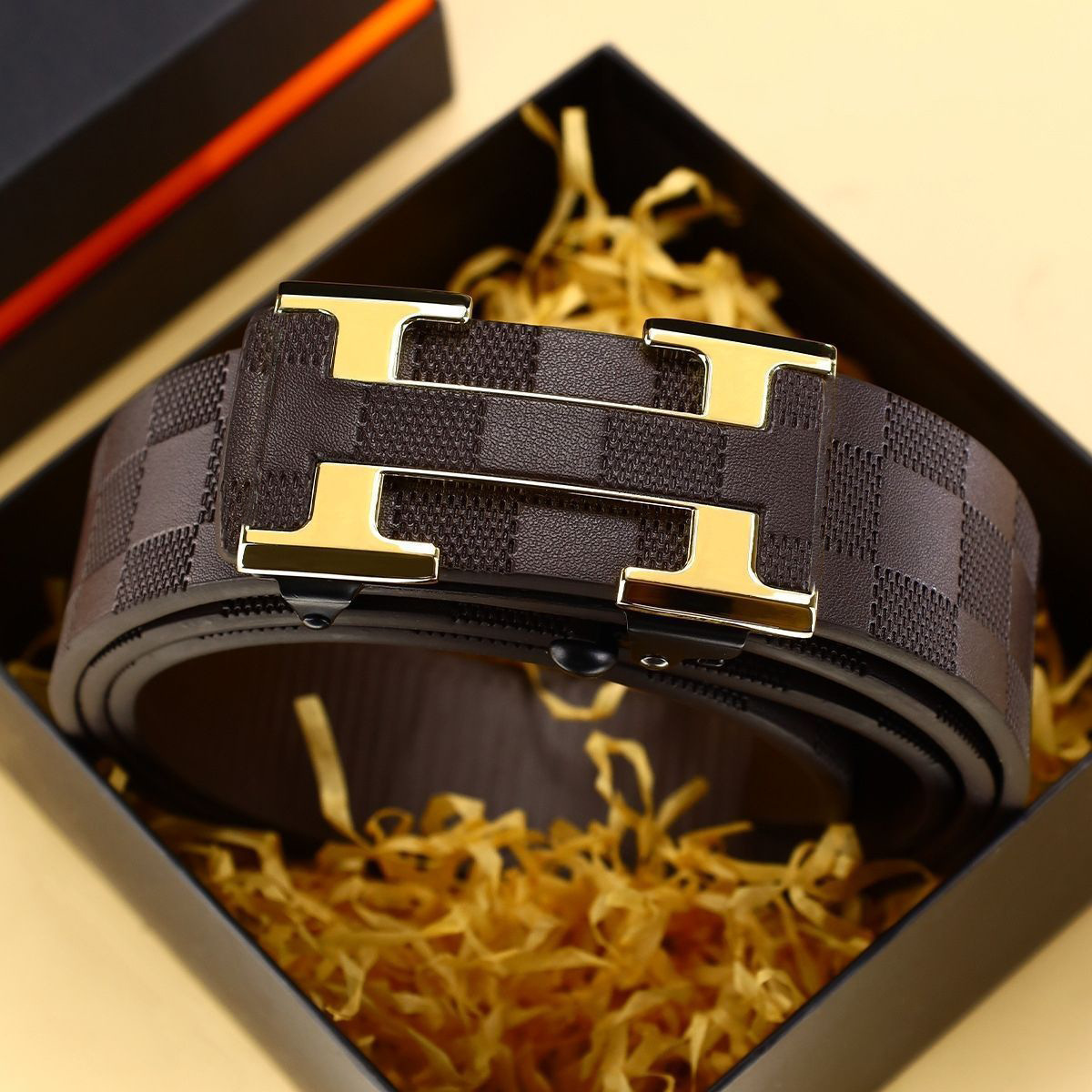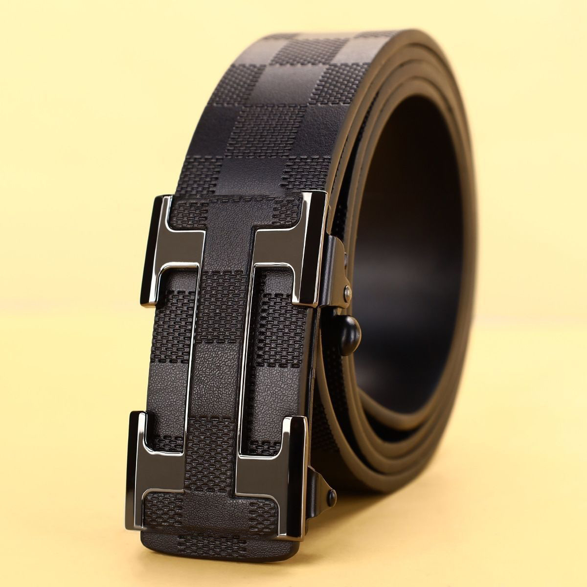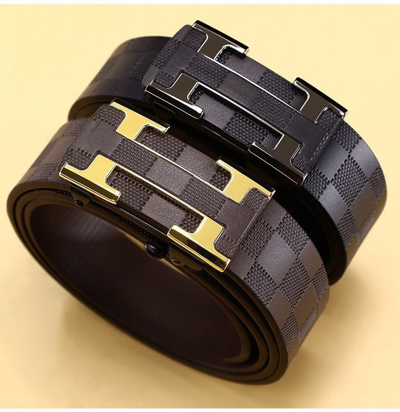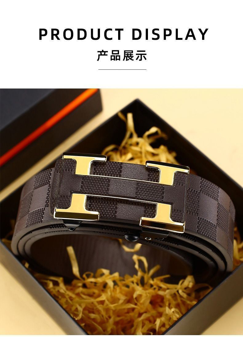 2025 신형 남성 벨트 체크 무지 H 버클 이빨없는 자동 버클 벨트 비즈니스 패션 트렌드 다용도 바지 벨트스토어 가기