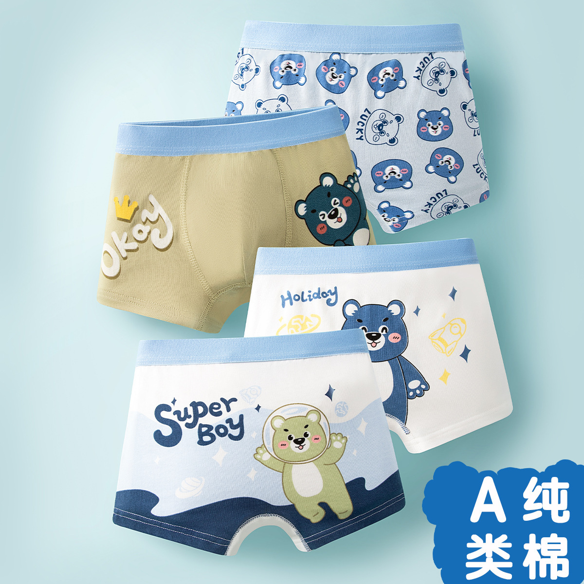 새로운 아동용 속옷, 남아용 순면 팬티, 청소년용 A급 면 사각팬티, 남아용 사각반바지, 만화 캐릭터, 부드러운스토어 가기