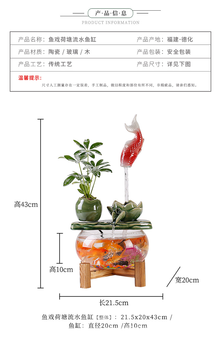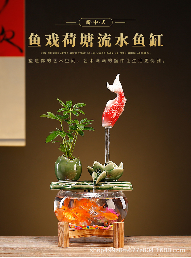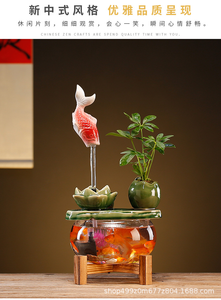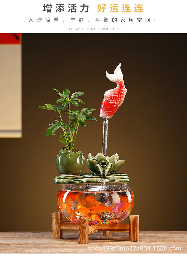 창의적인 걸이형 물 장식품, 거실 입구, 행운의 물고기 탱크, 소형 물 순환 가습기, 집들이 및 개업 선물