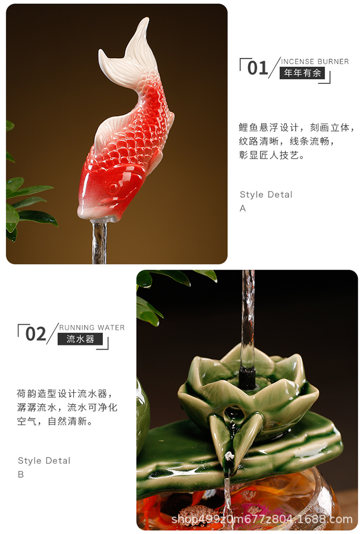 창의적인 걸이형 물 장식품, 거실 입구, 행운의 물고기 탱크, 소형 물 순환 가습기, 집들이 및 개업 선물스토어 가기