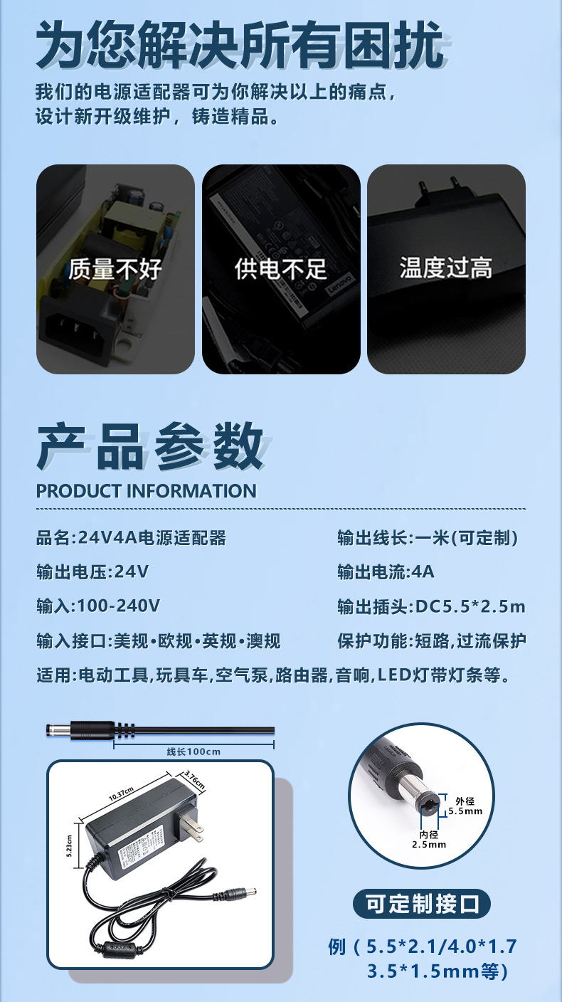 24V4A 전원 어댑터 96W 보안 모니터링 전원 공급 장치 LED 라이트 스트립 24V 네일 램프 정수기 워터 펌프 전원 공급 장치스토어 가기