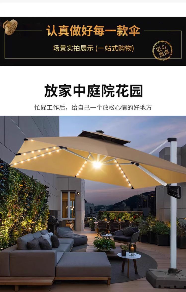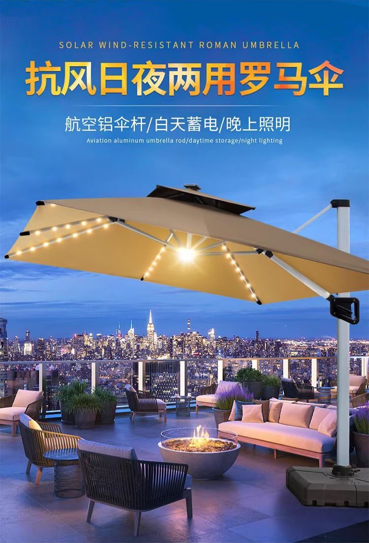 파라솔, 야외 우산, 안뜰 우산, 빌라 정원 테라스 창고, 상업용 스톨, 야외 로마 우산, 태양광 조명