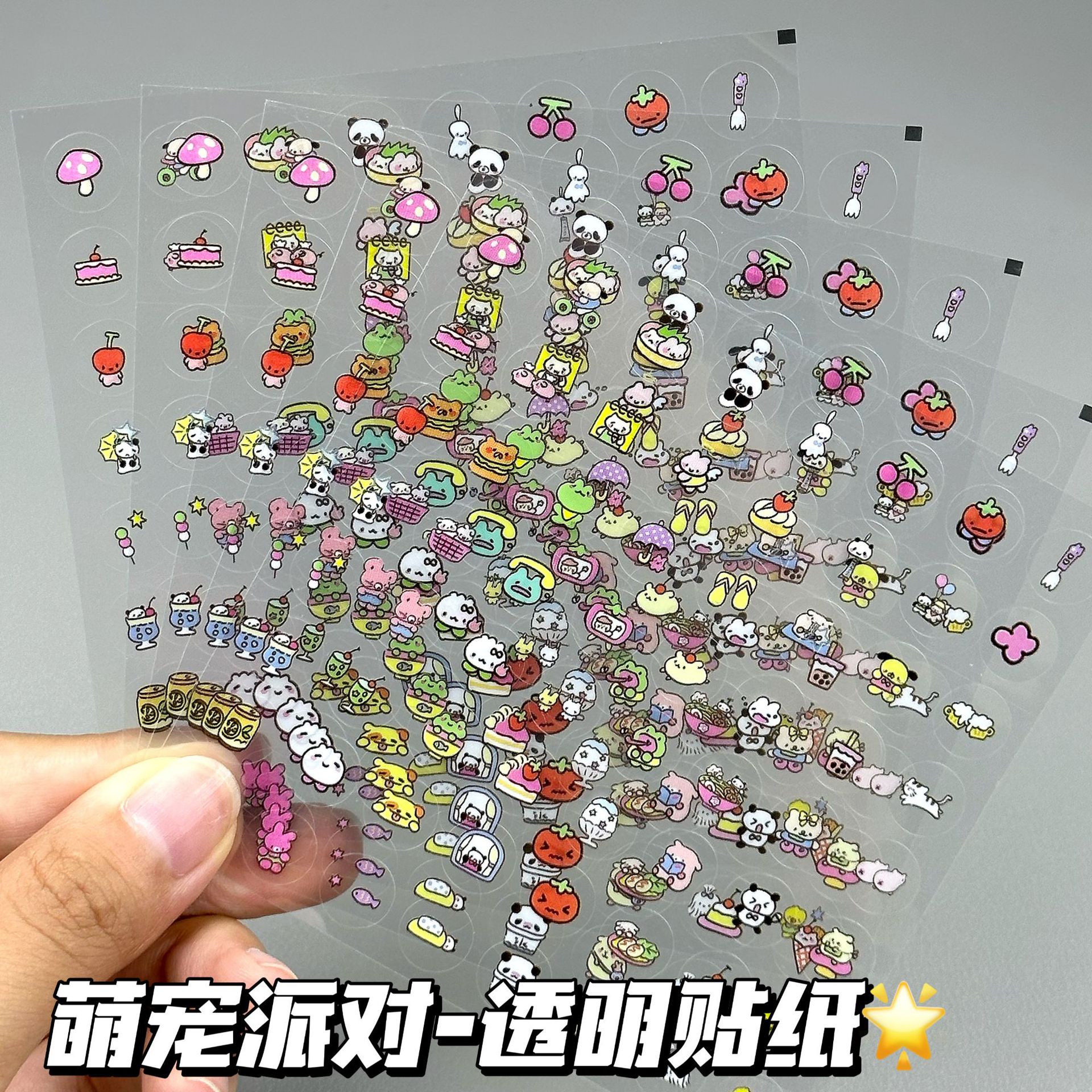 만화 귀여운 애완 동물 파티 diy 투명 스티커 학생 장식 고가치 핸드북 소재 펜 홀더 방수 스티커스토어 가기