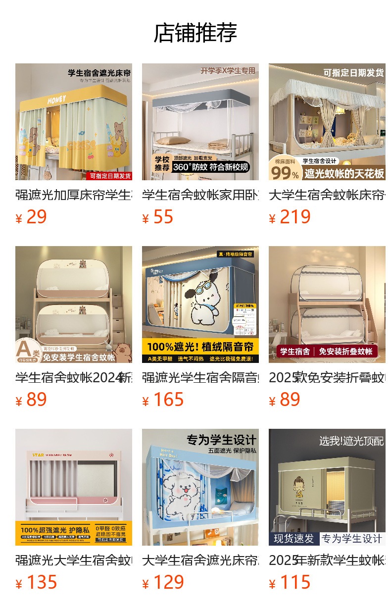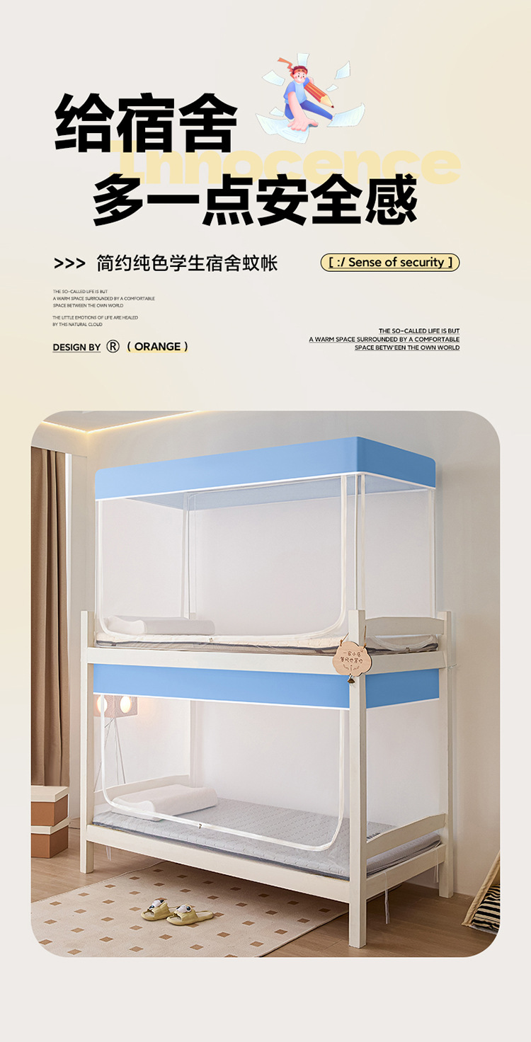 학생 기숙사 모기장 가정용 침실 2025년형 신형 이층 침대 커튼 완전 밀폐형 침대 커튼 모기 방지 일체형스토어 가기