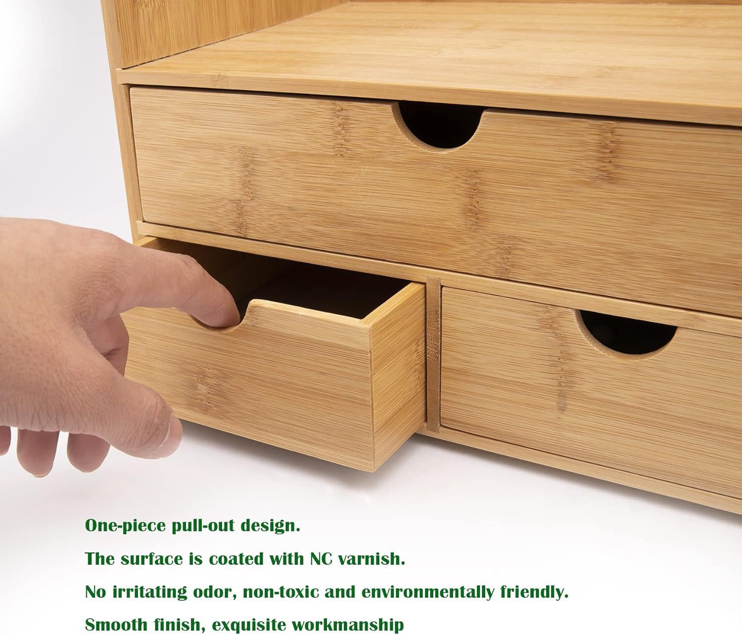 서랍이 있는 대나무 수납 캐비닛, 사무용품 펜 홀더, 스킨 케어 제품 정리함, 보석 수납 상자, 난 대나무 상자