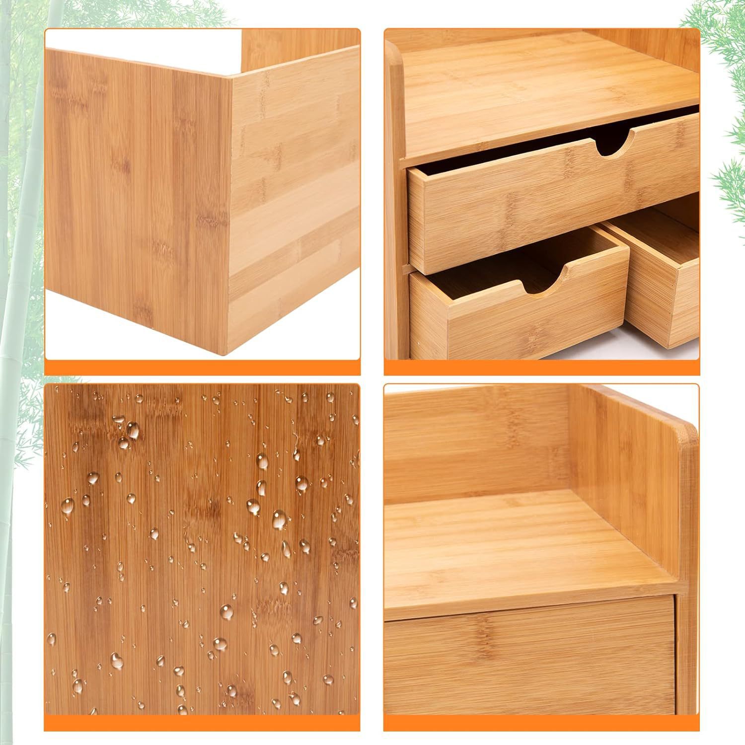 서랍이 있는 대나무 수납 캐비닛, 사무용품 펜 홀더, 스킨 케어 제품 정리함, 보석 수납 상자, 난 대나무 상자스토어 가기