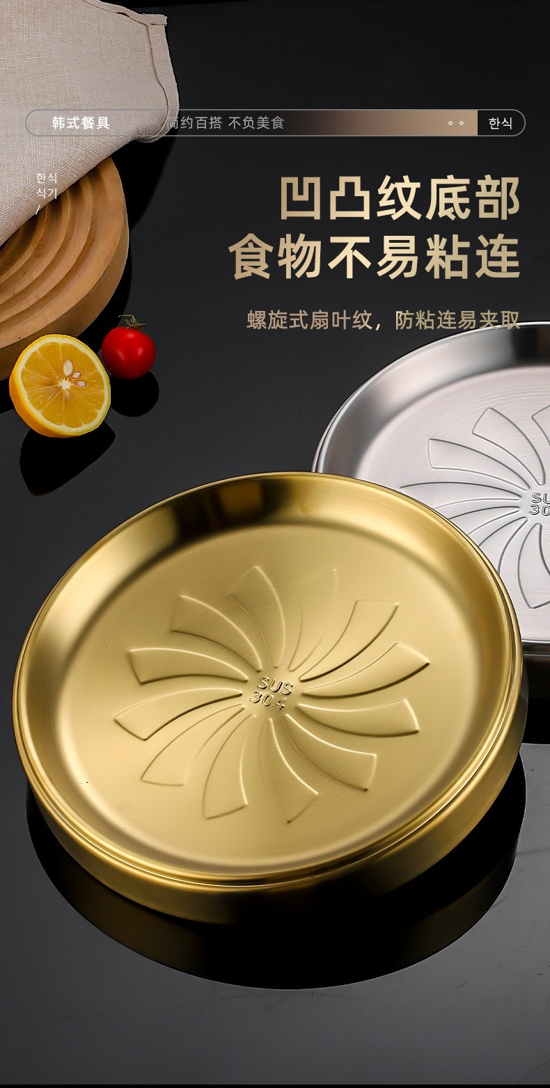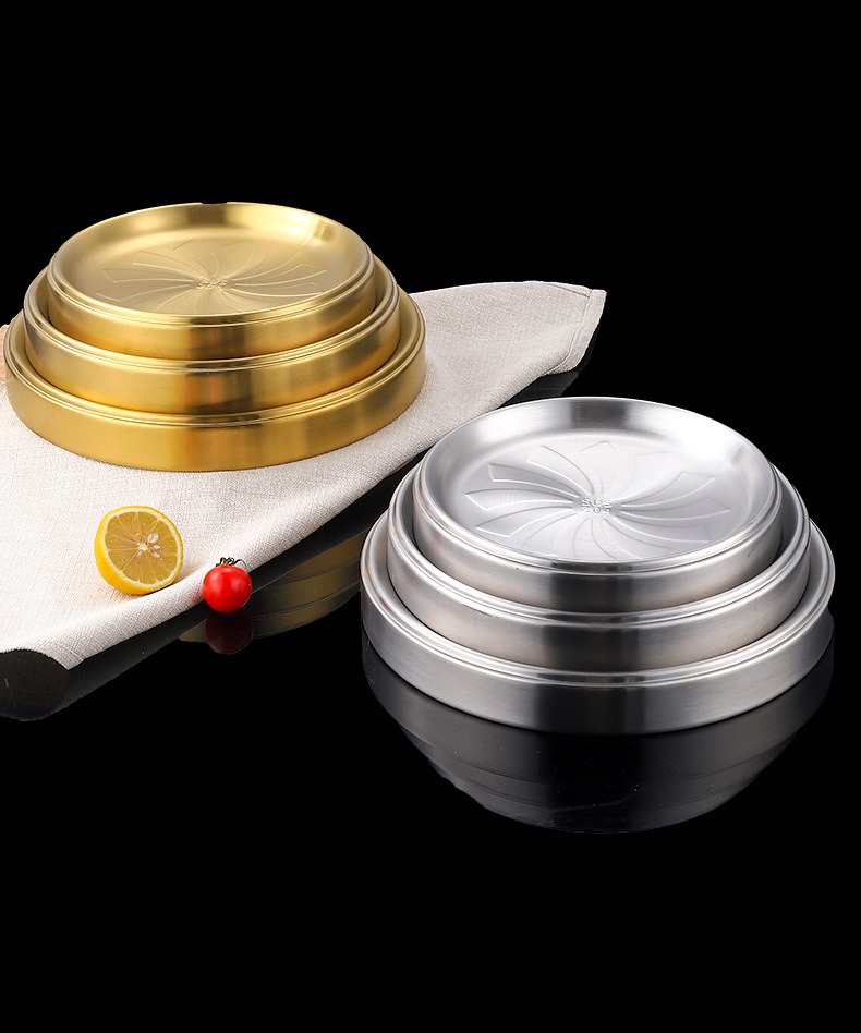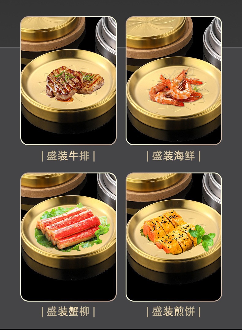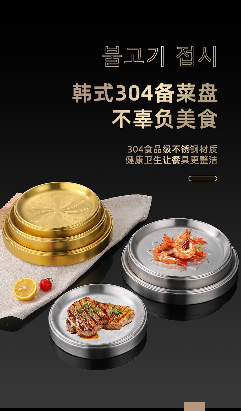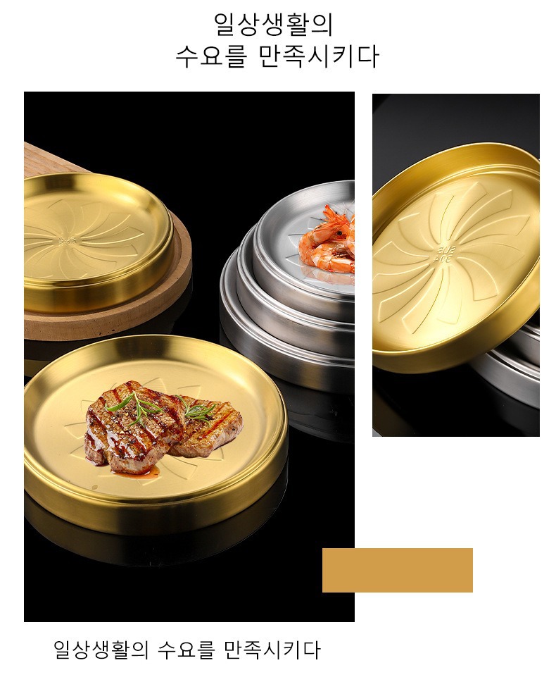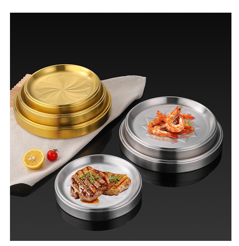 304 스테인레스 스틸 더블 레이어 준비 접시 골든 디너 플레이트 바베큐 플레이트 레스토랑 라운드 스테이크 플레이트 서양 음식 플레이트스토어 가기
