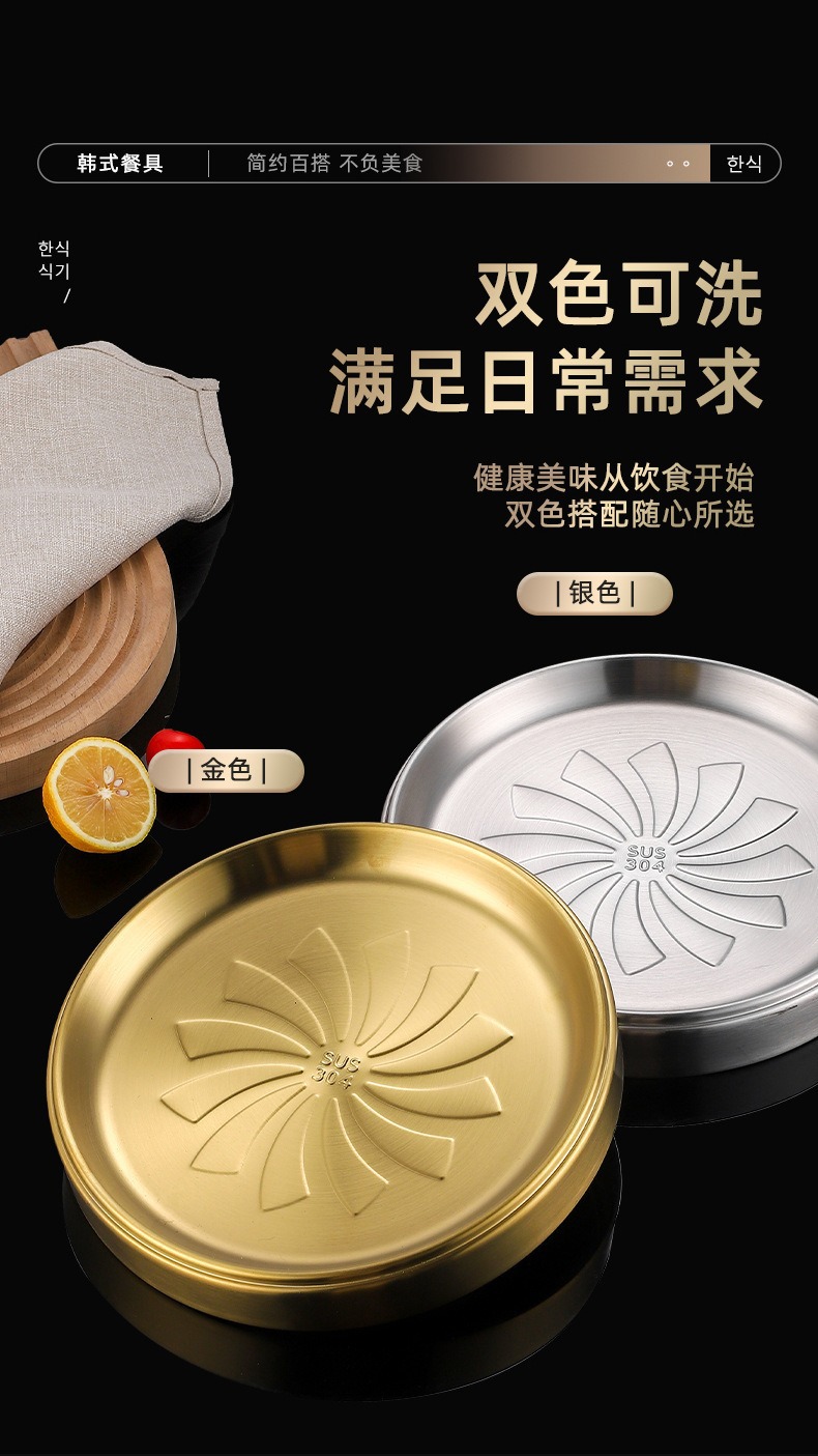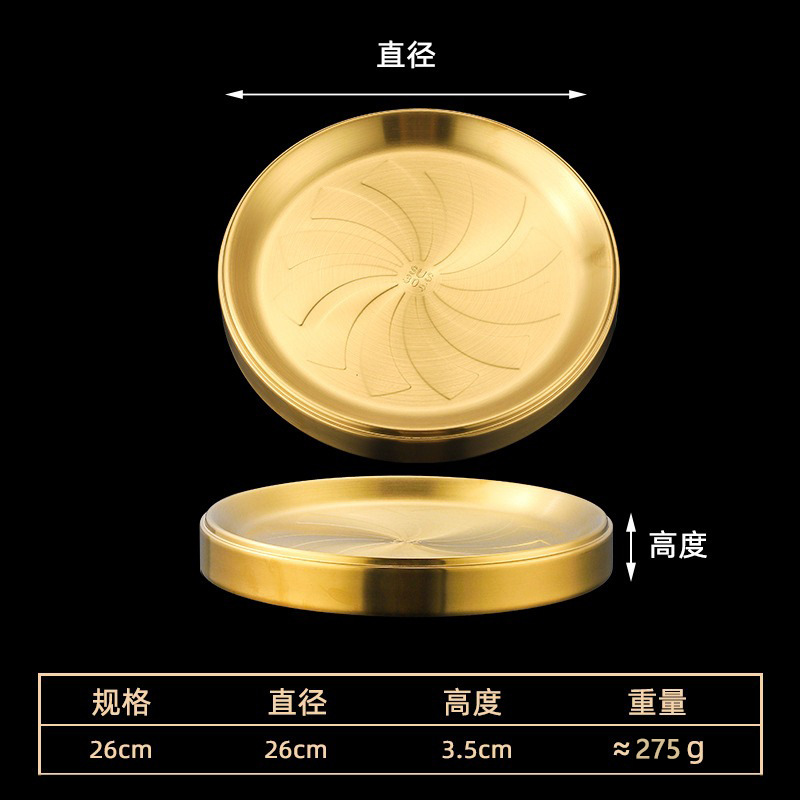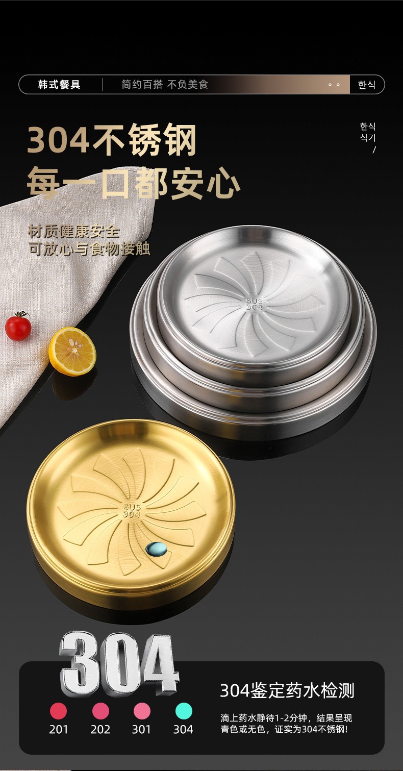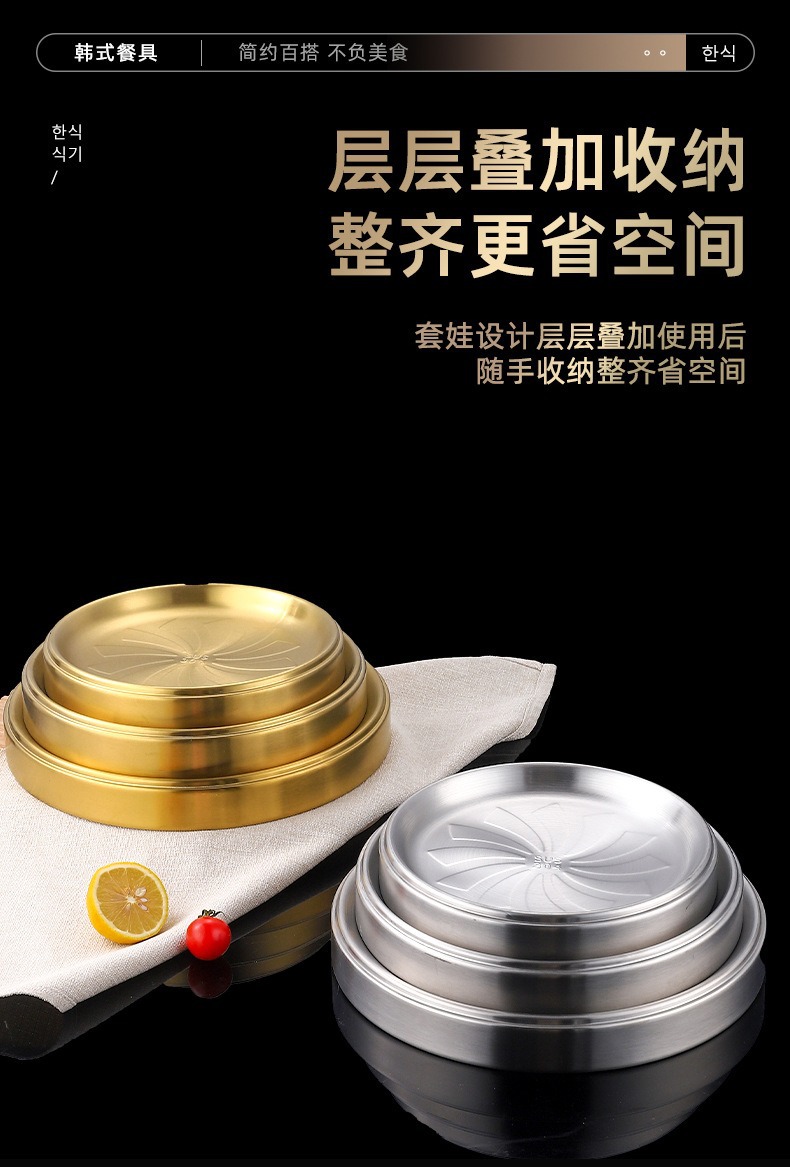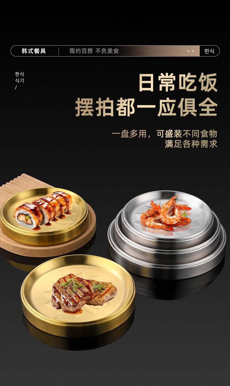 304 스테인레스 스틸 더블 레이어 준비 접시 골든 디너 플레이트 바베큐 플레이트 레스토랑 라운드 스테이크 플레이트 서양 음식 플레이트스토어 가기