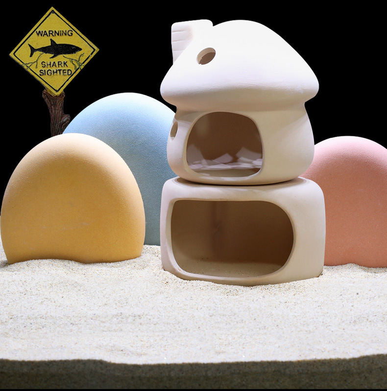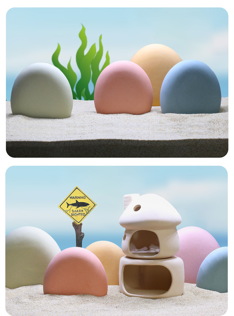 국경을 넘는 수족관 장식용 도자기 항아리, 컬러 스톤 은신처, 모조 컬러 스톤 장식, 세라믹 장식품 풀세트