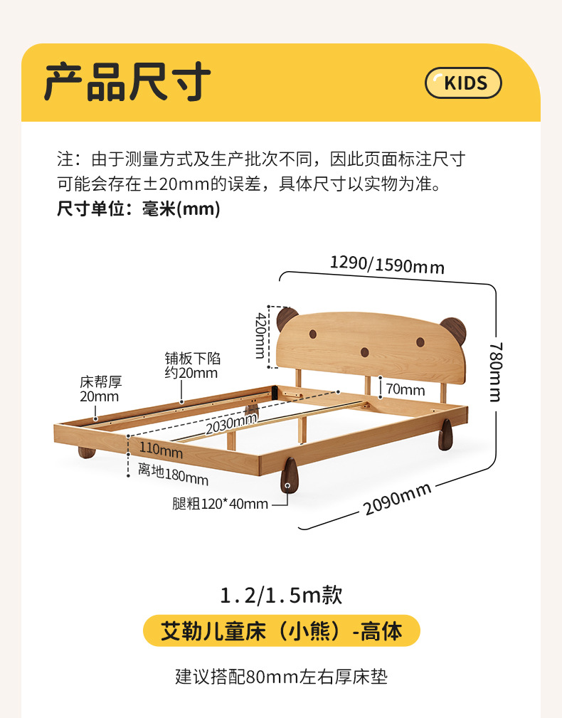 • [너도밤나무색-드워프침구] 엘 어린이침대(꼬마곰) + 매트리스(20CM)