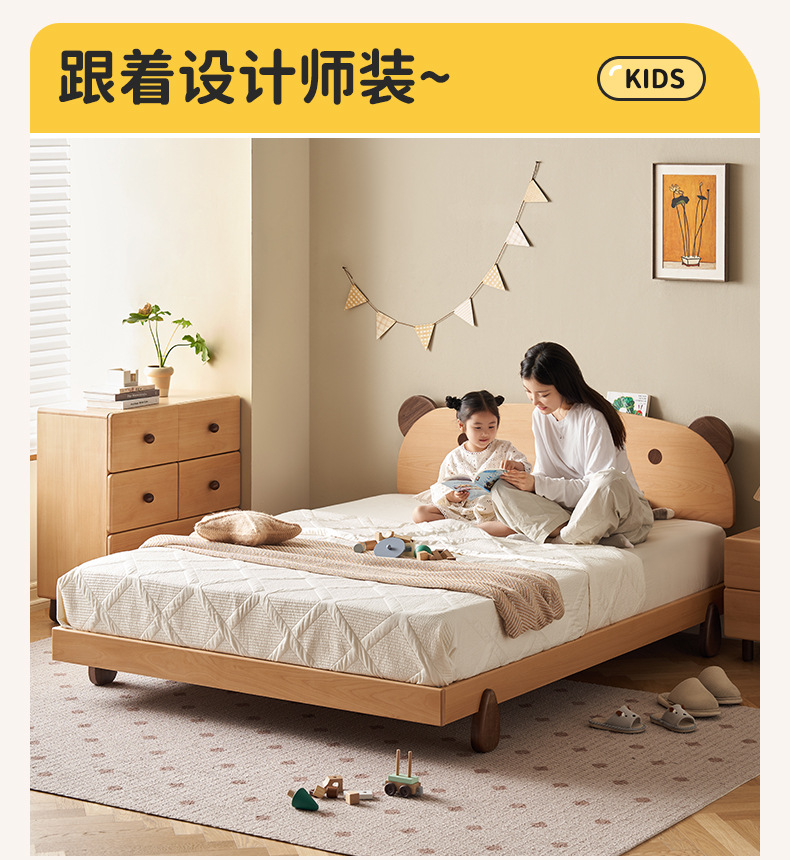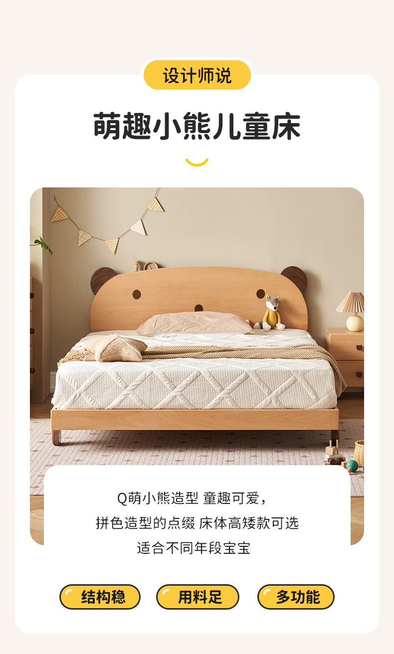 코사인 모든 단단한 나무 어린이 침대 소년과 소녀 곰 침대 만화 공주 침대 너도밤 나무 싱글 침대 E2018스토어 가기