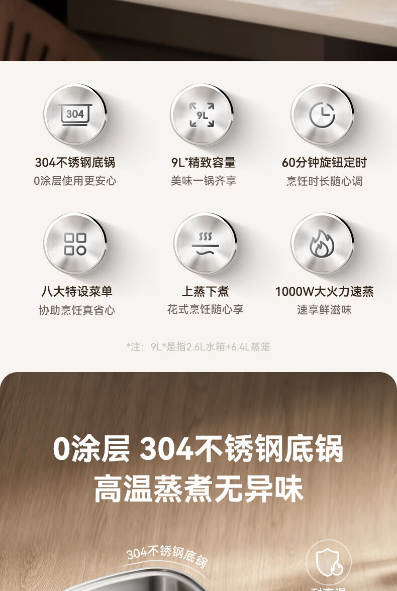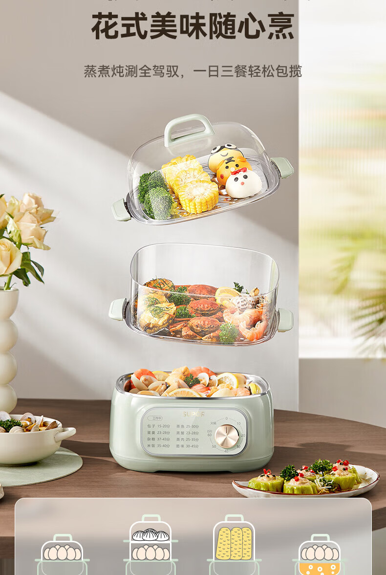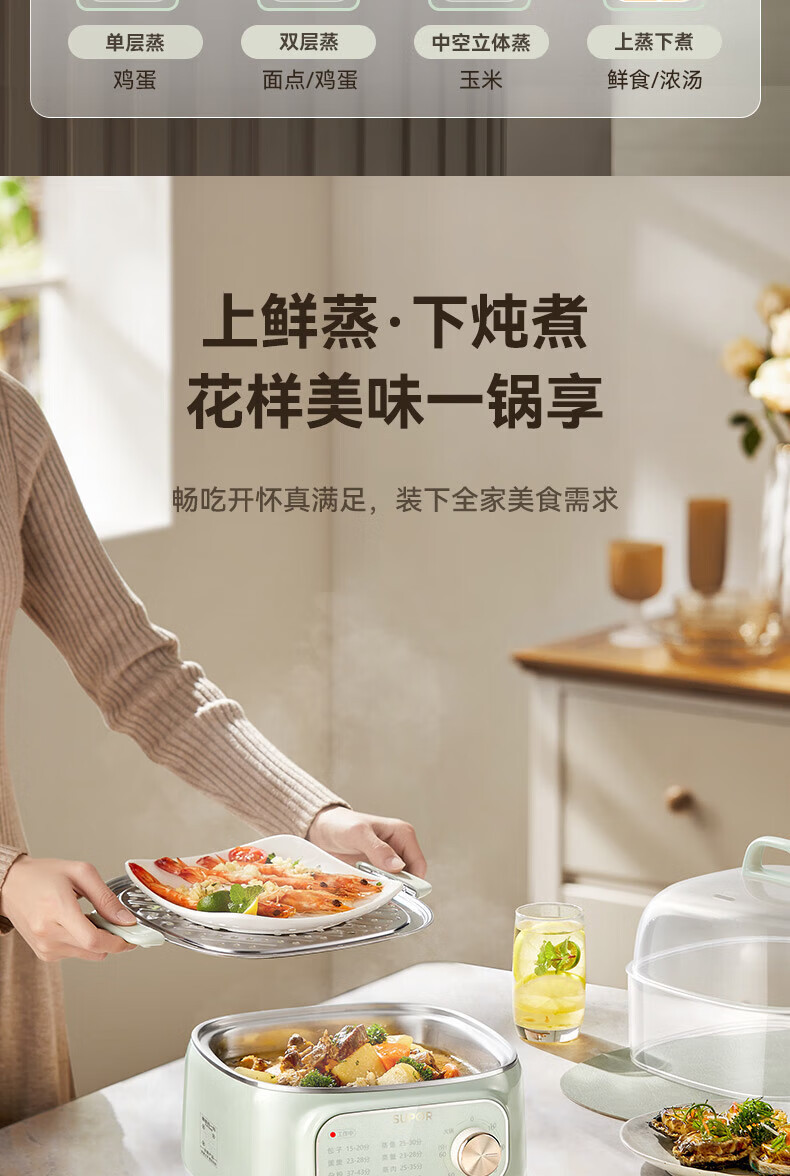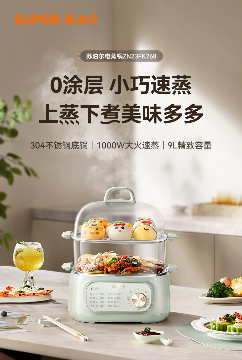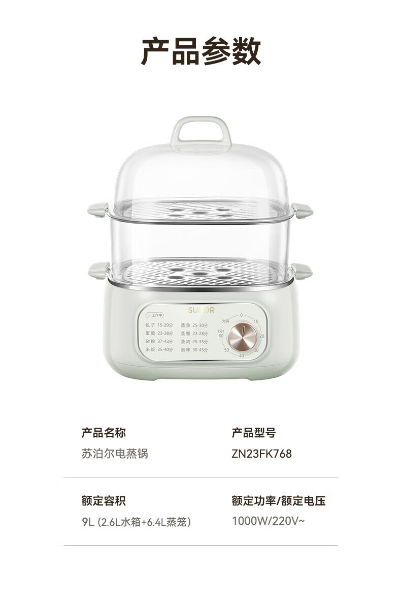Supor ZN23FK768 전기 찜통 가정용 9 리터 스튜 및 찜 일체형 전기 밥솥 다기능 아침 식사 기계스토어 가기