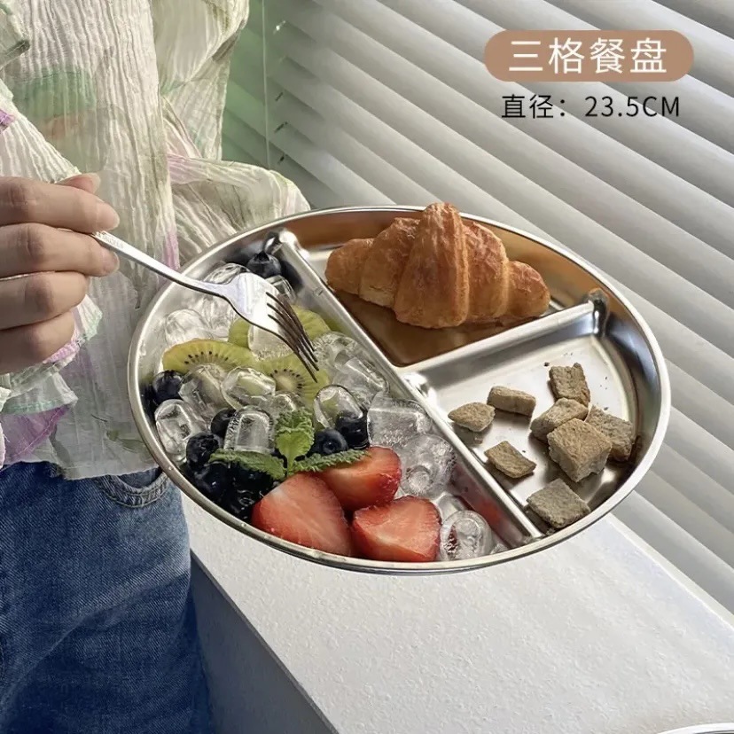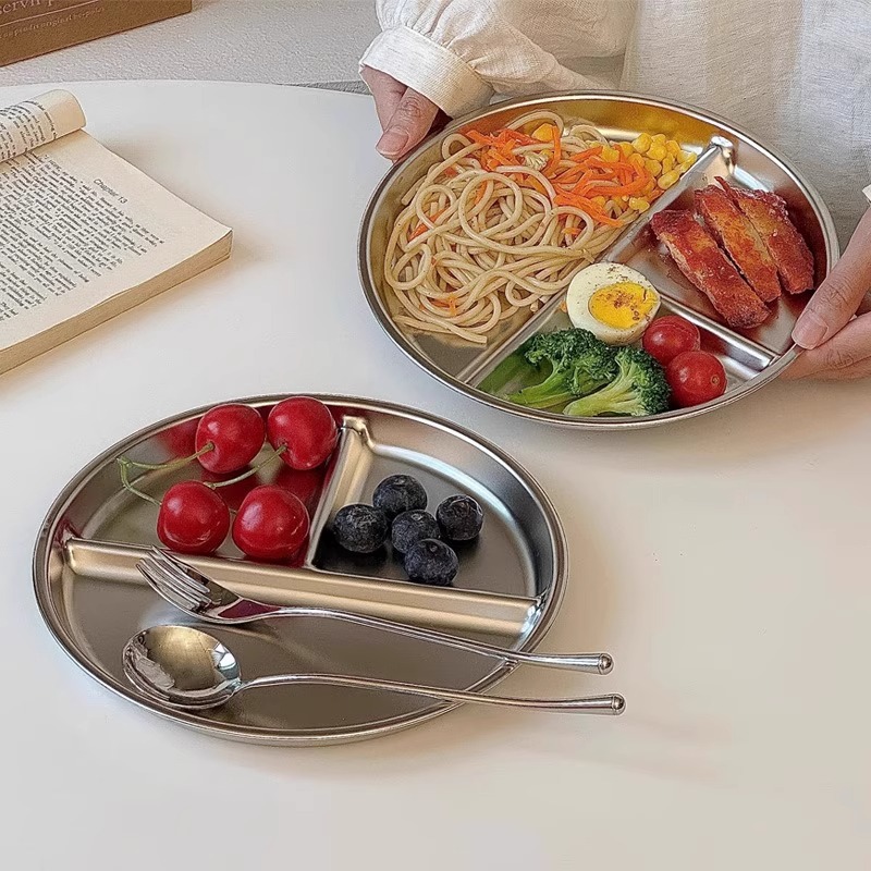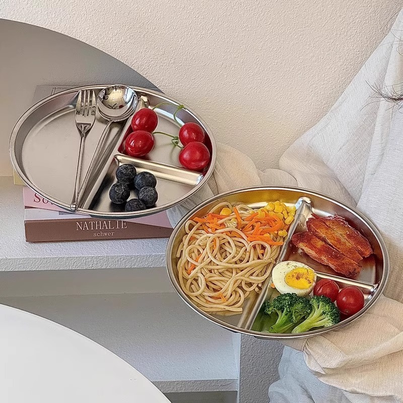 304 스테인레스 스틸 분할 접시, 성인과 어린이를 위한 둥근 3칸 접시, 지방 감량 및 정량, 귀여운 분할 접시, 스낵 접시