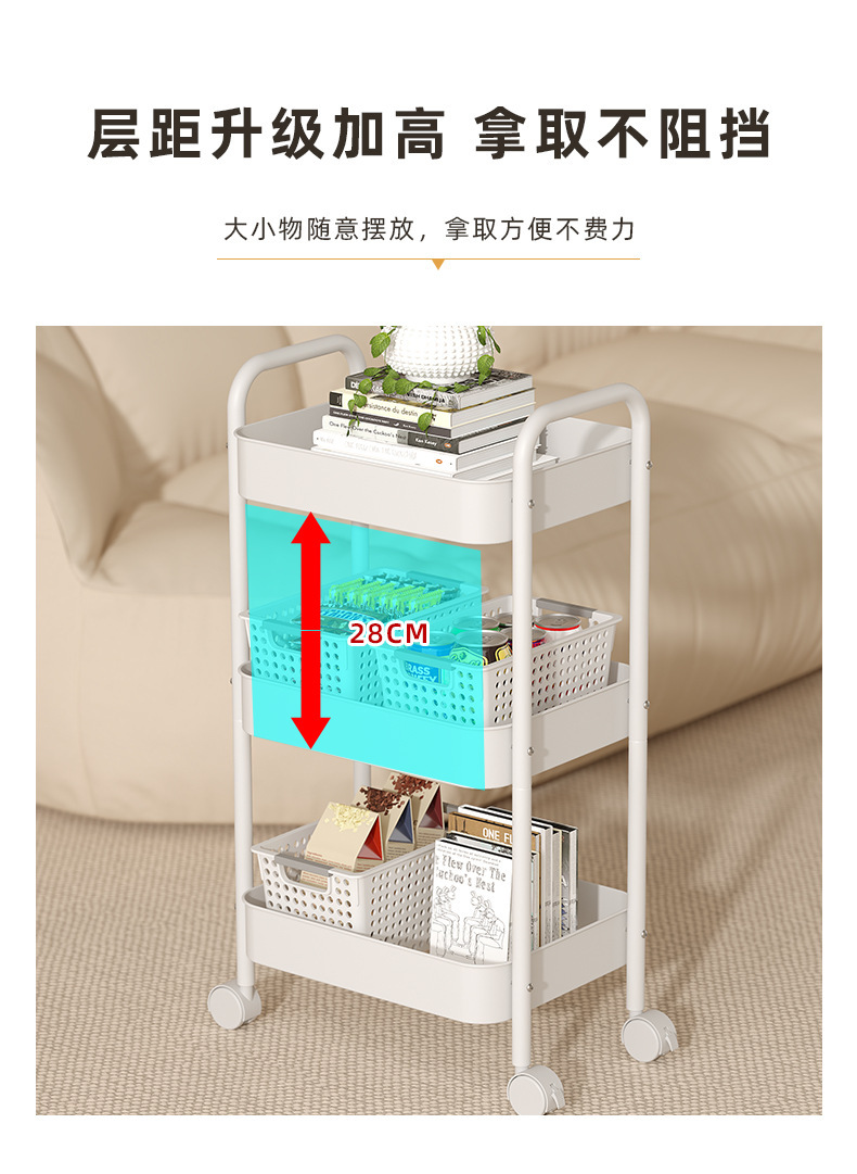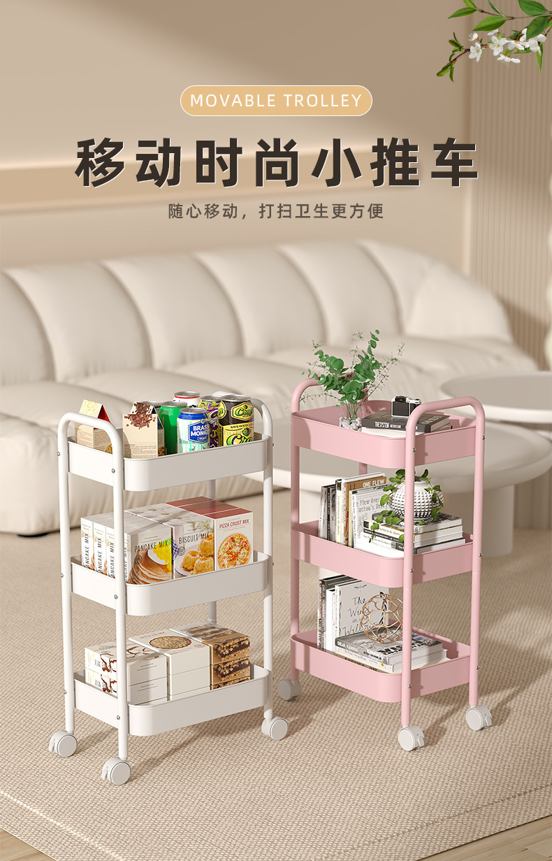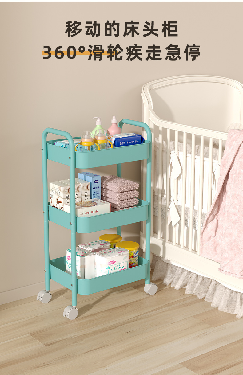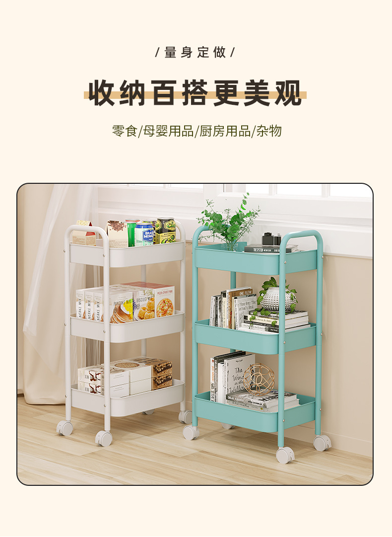 置物架小推车落地可移动收纳储物零食收纳架碳钢客厅宝宝多层架子