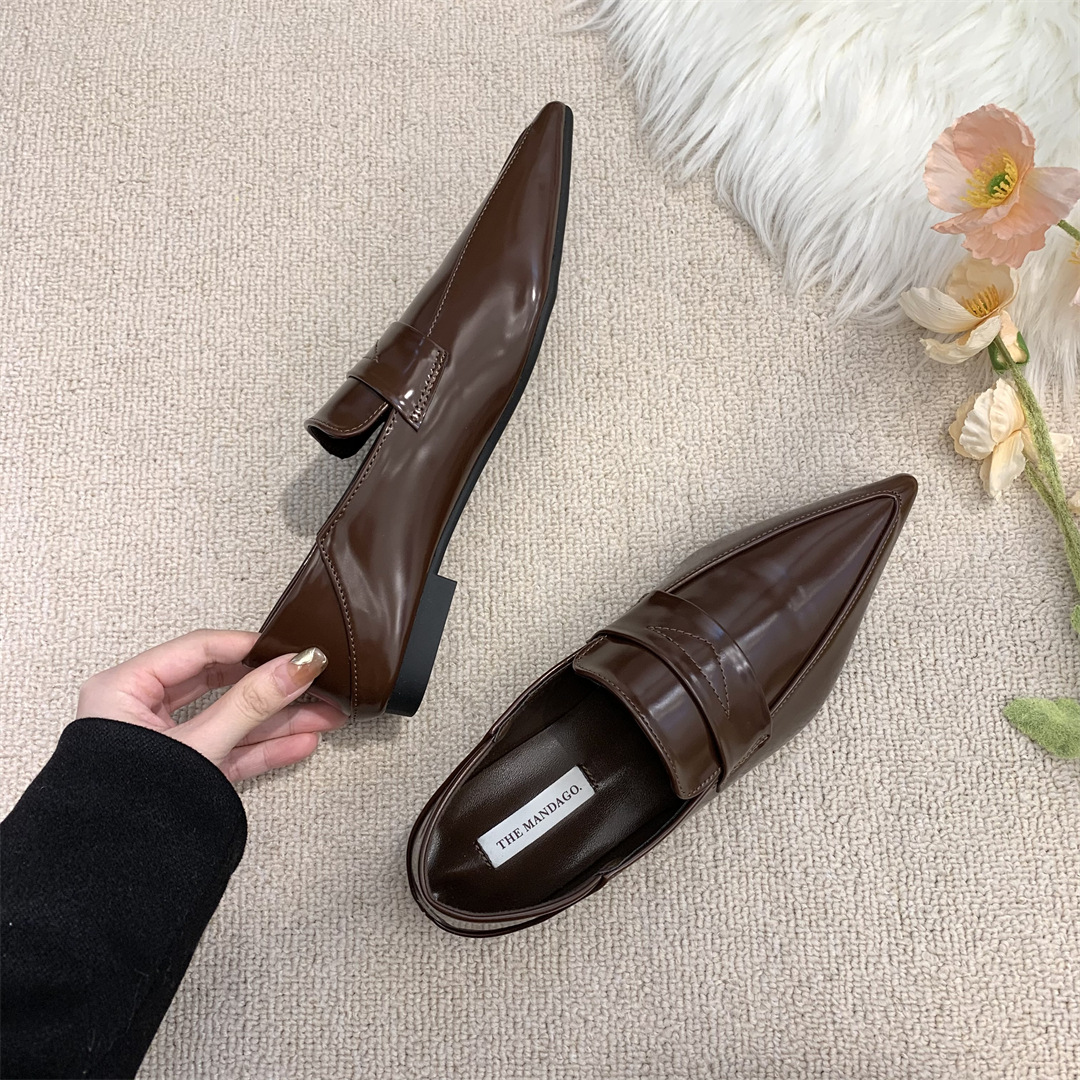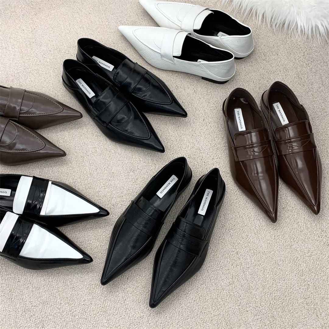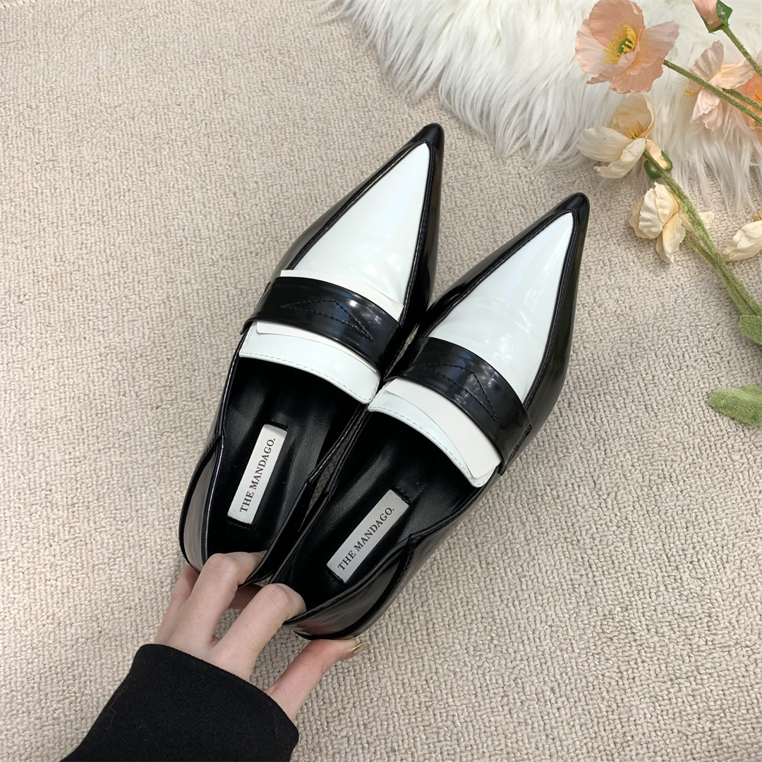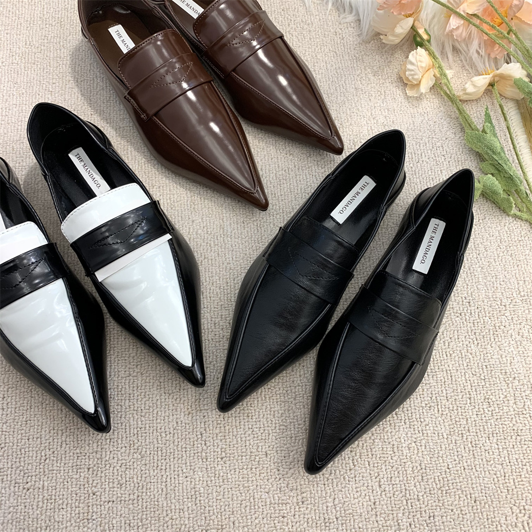 프렌치 레트로 작은 가죽 신발 ins 트렌디 컬러 블록 포인티드 로퍼 2025 봄 여름 한국 스타일 여성 패션 신발스토어 가기