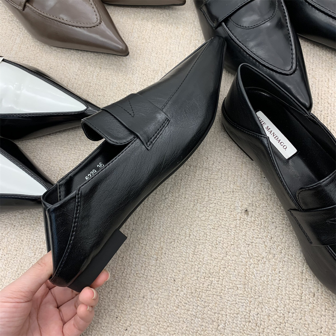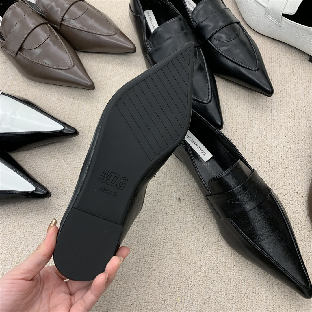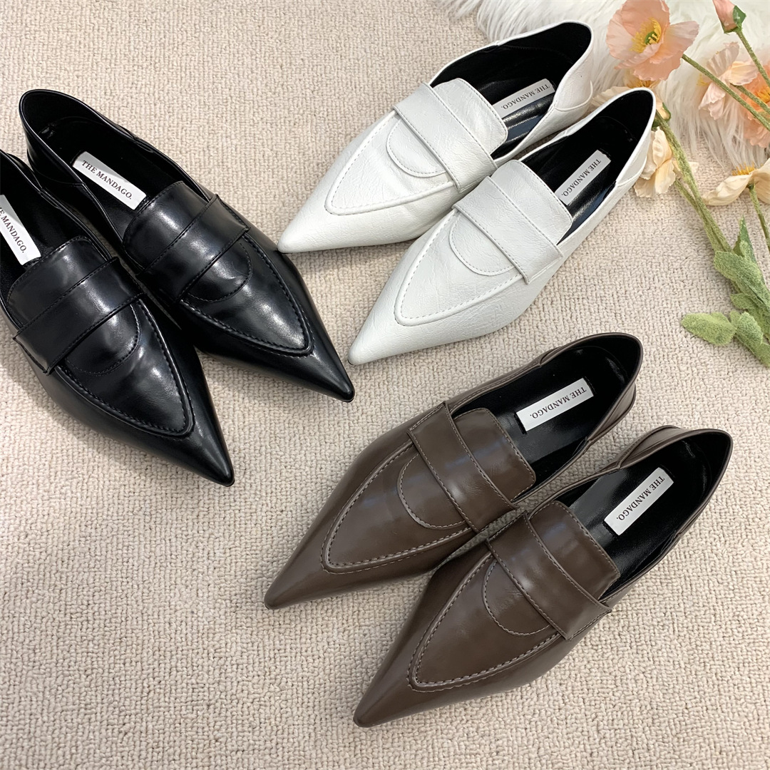 프렌치 레트로 작은 가죽 신발 ins 트렌디 컬러 블록 포인티드 로퍼 2025 봄 여름 한국 스타일 여성 패션 신발스토어 가기
