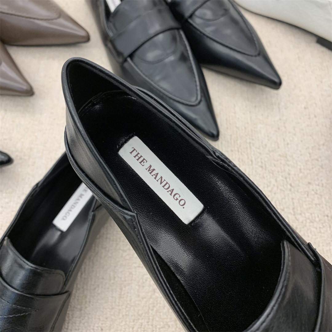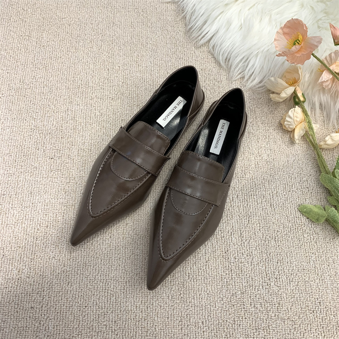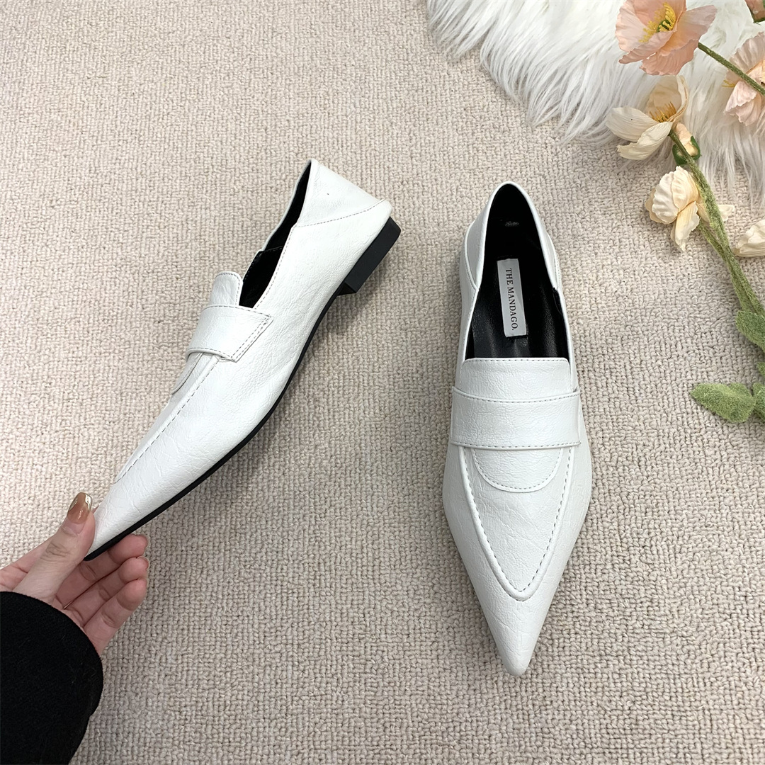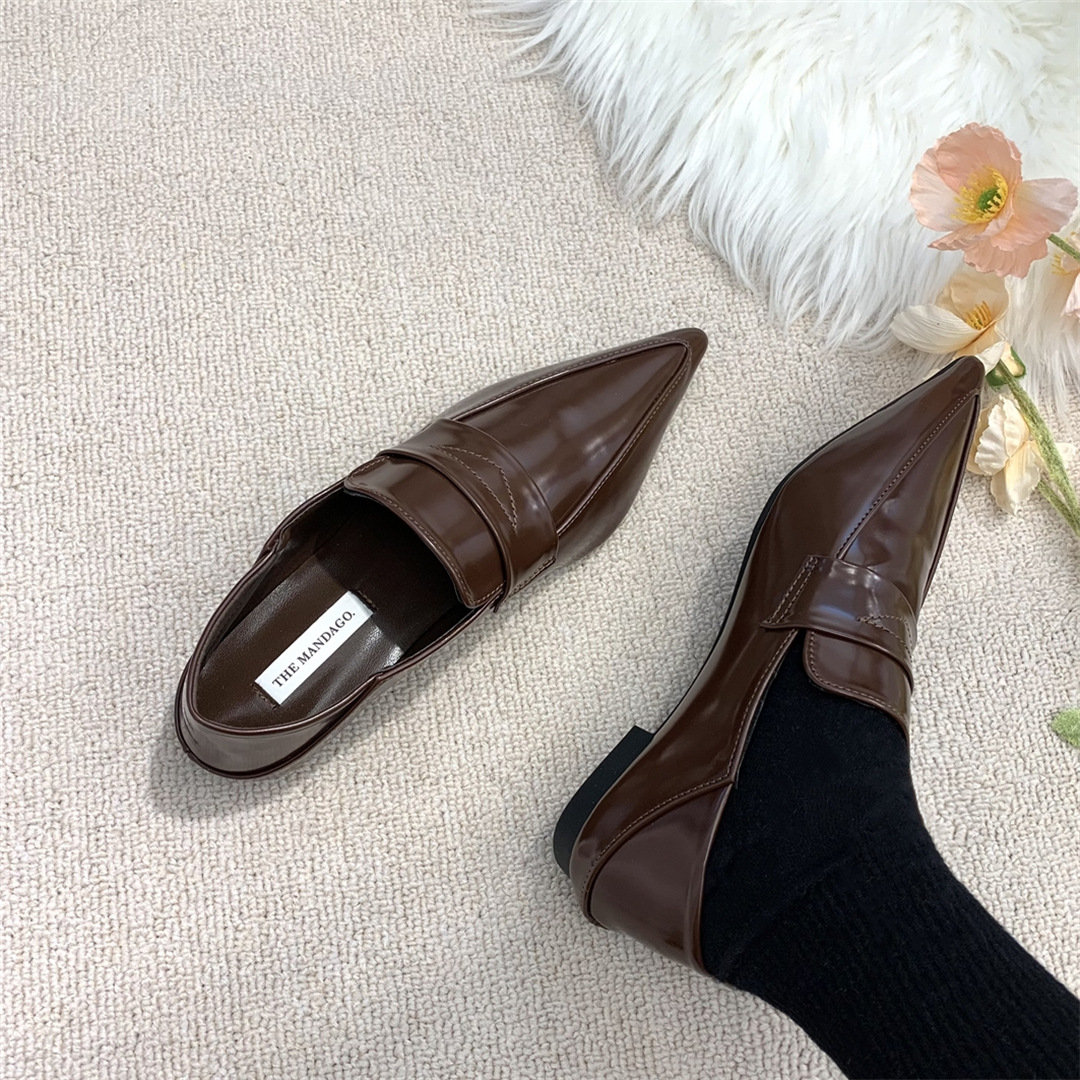 프렌치 레트로 작은 가죽 신발 ins 트렌디 컬러 블록 포인티드 로퍼 2025 봄 여름 한국 스타일 여성 패션 신발스토어 가기