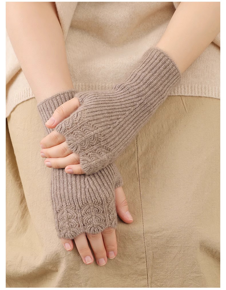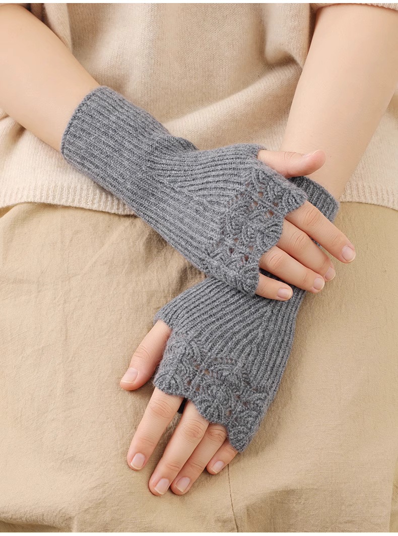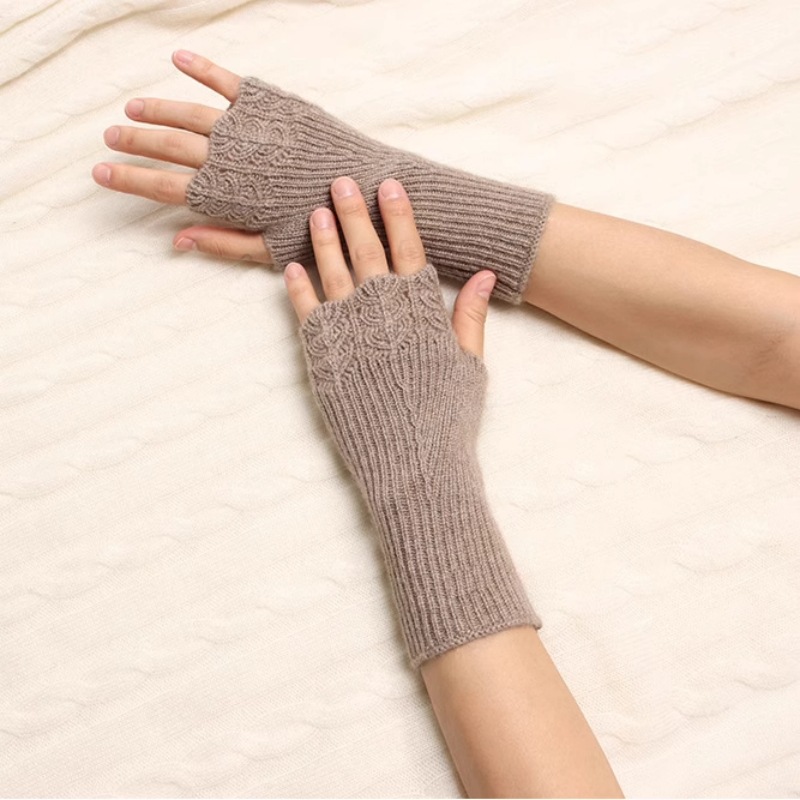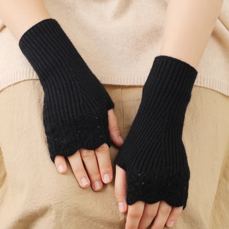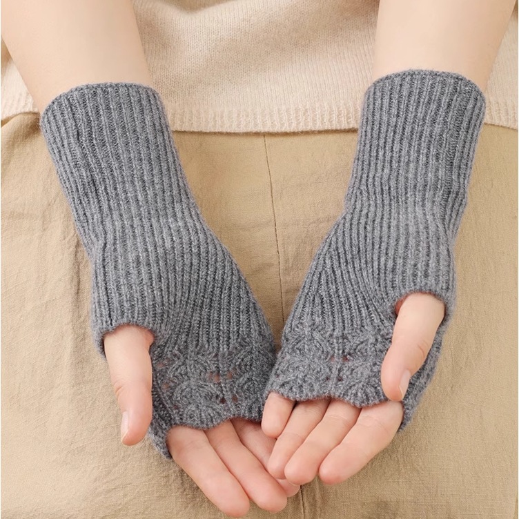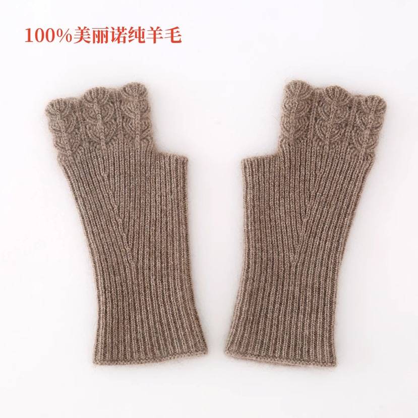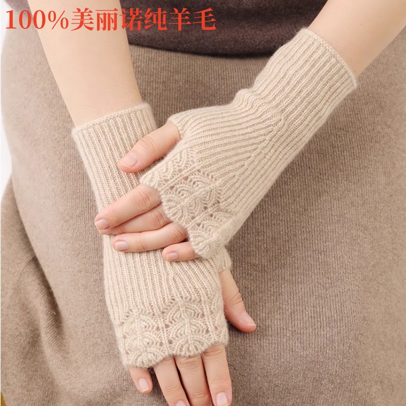 가을, 겨울 100% 순수 양모 학생 쓰기 반 손가락 장갑 여성 야외 방한 따뜻한 니트 핑거리스 양모 장갑