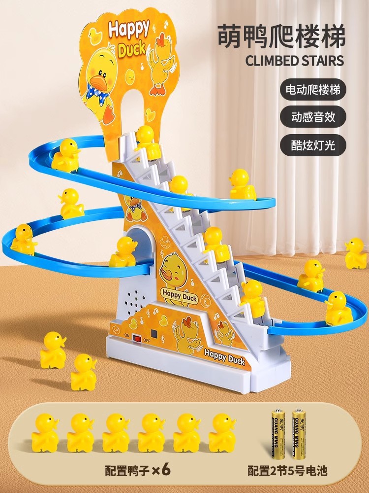 • [귀여운 오리의 재미있는 계단 오르기 - 충전식 버전] - 노란색 작은 오리 6마리