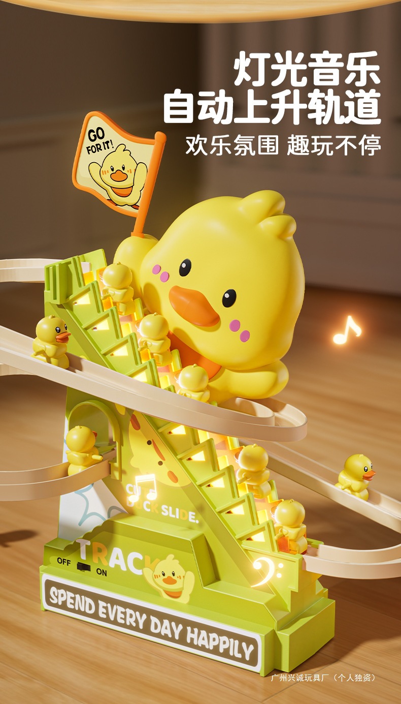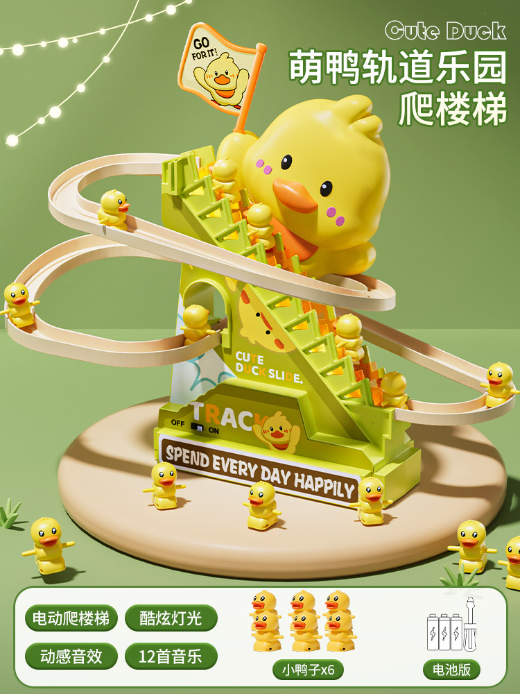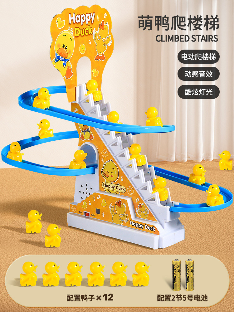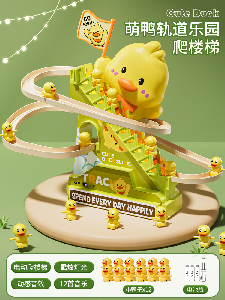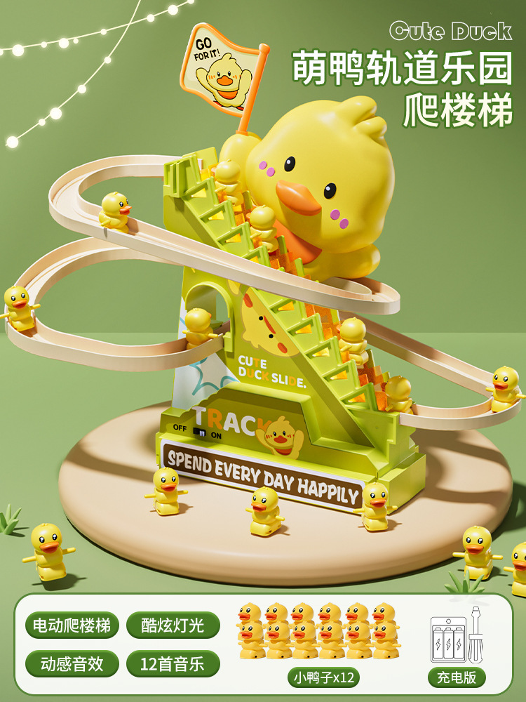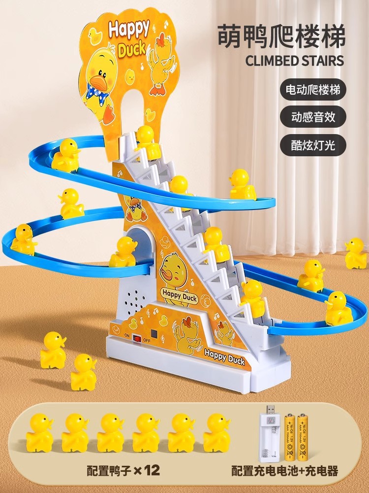 • [귀여운 오리의 재미있는 계단 오르기 - 충전식 버전] - 12마리의 작은 노란 오리.