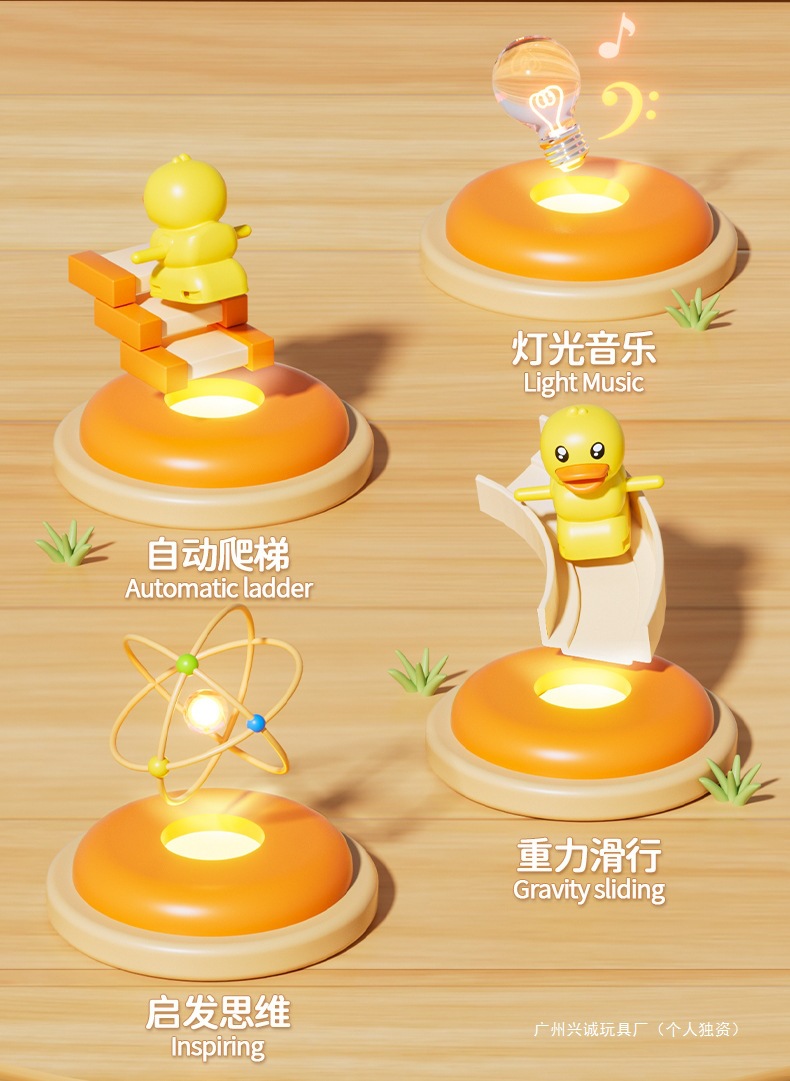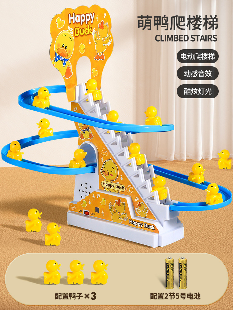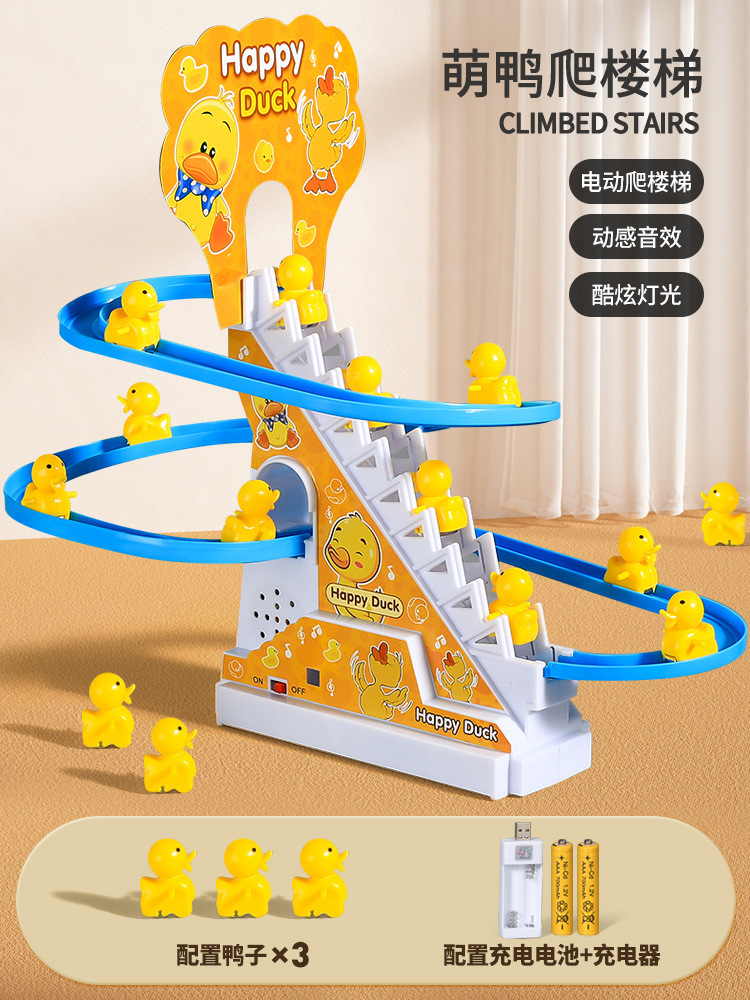 • [귀여운 오리의 재미있는 계단 오르기 - 충전식 버전] - 노란색 작은 오리 3마리