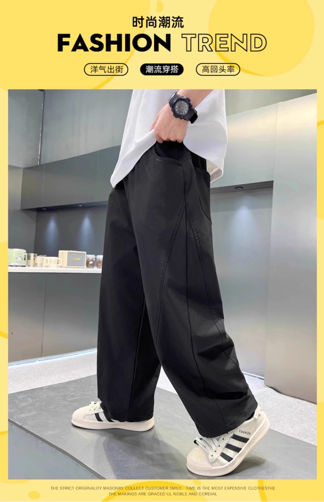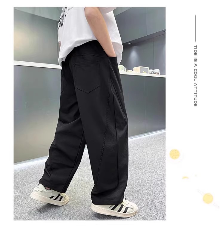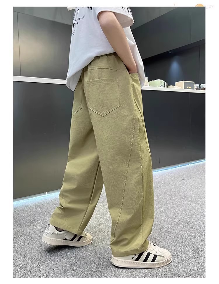 소년 캐주얼 바지 봄 여름 2025 새로운 어린이 여름 느슨한 얇은 스트레이트 바지 중대형 어린이 잘 생긴 바지