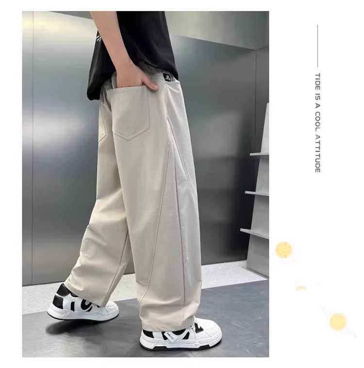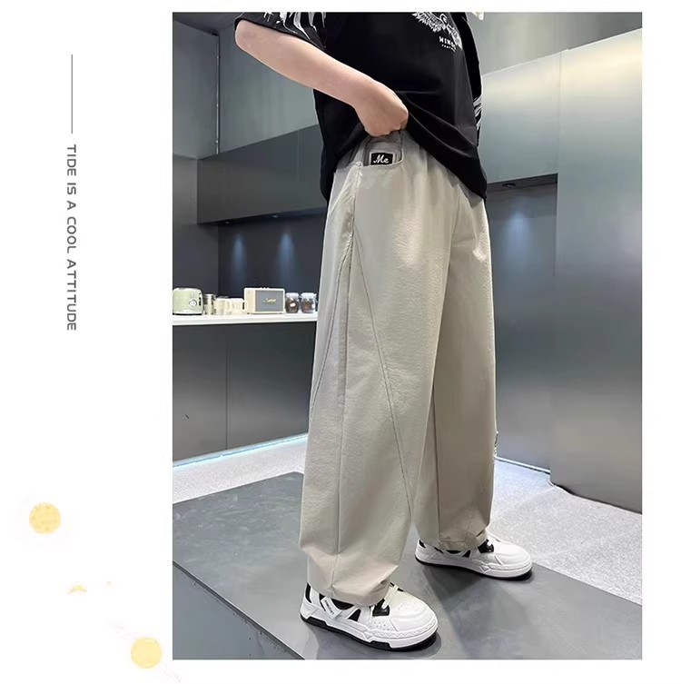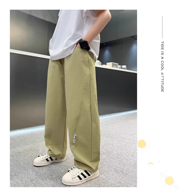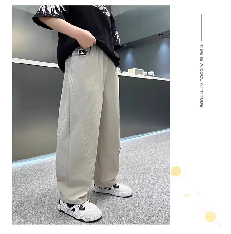 소년 캐주얼 바지 봄 여름 2025 새로운 어린이 여름 느슨한 얇은 스트레이트 바지 중대형 어린이 잘 생긴 바지스토어 가기