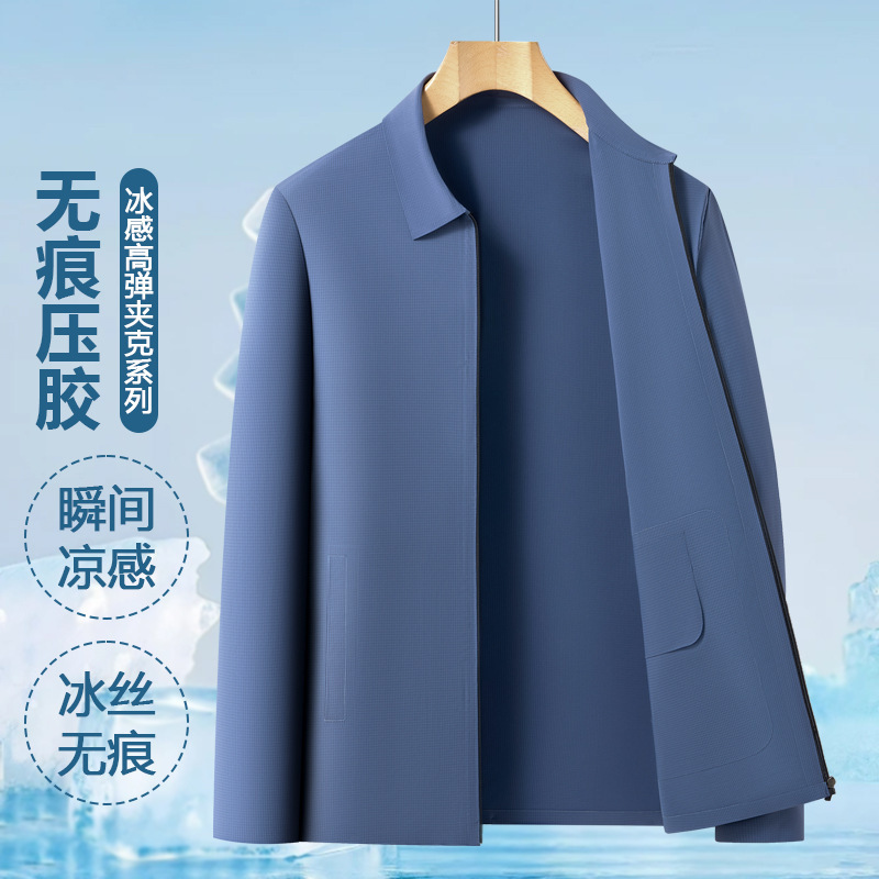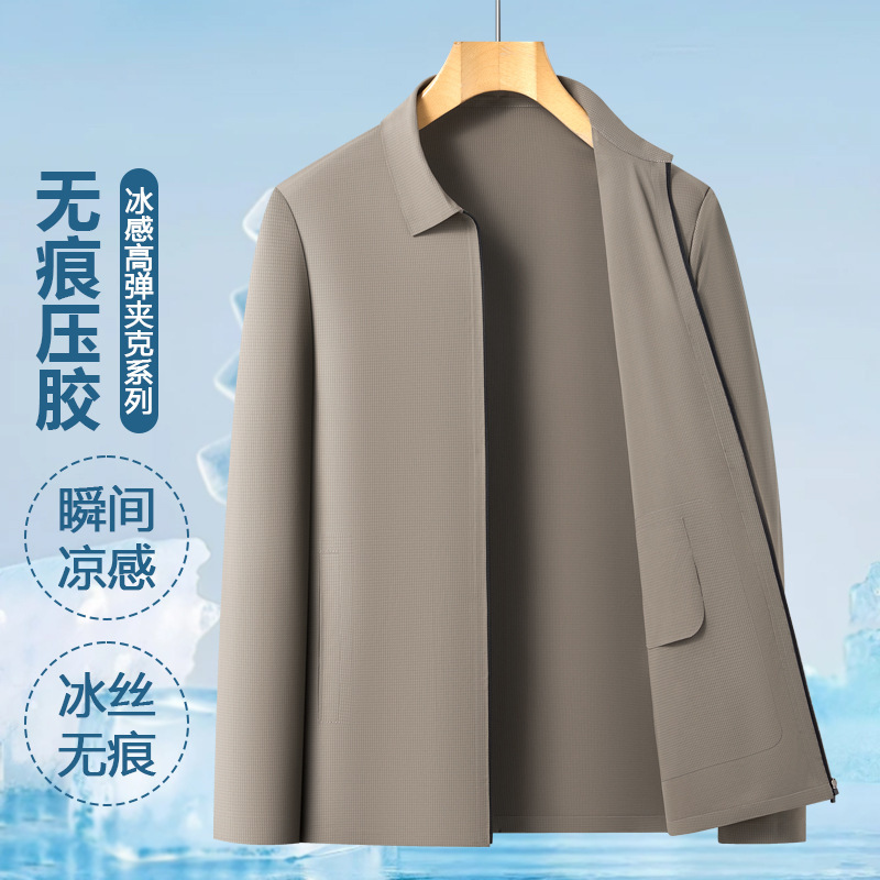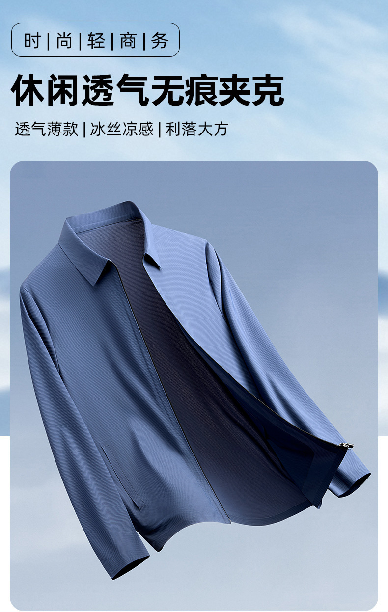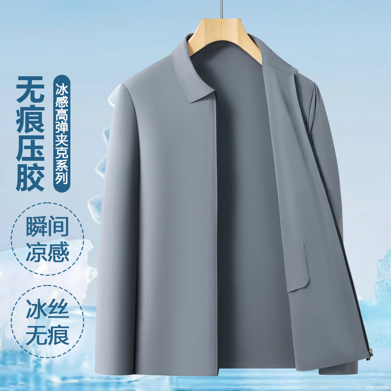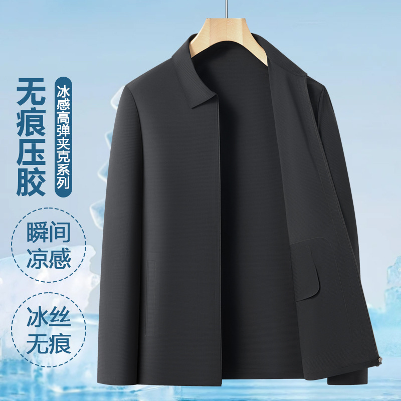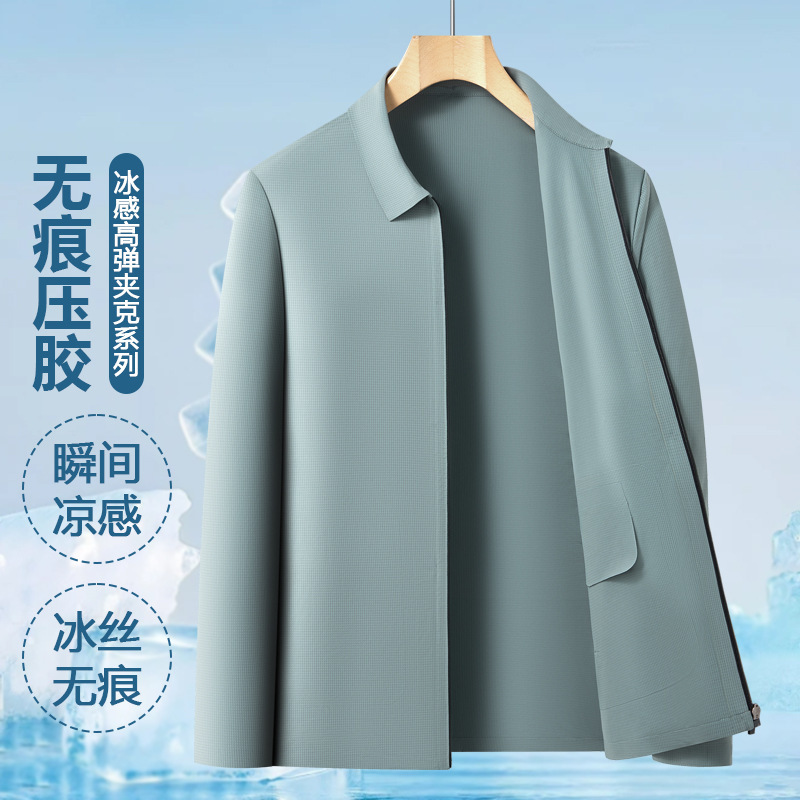 여름 신작 남성 라펠 재킷 솔리드 컬러 기본 폭스바겐 카디건 아이스 실크 심리스 아빠의 속건성 의류