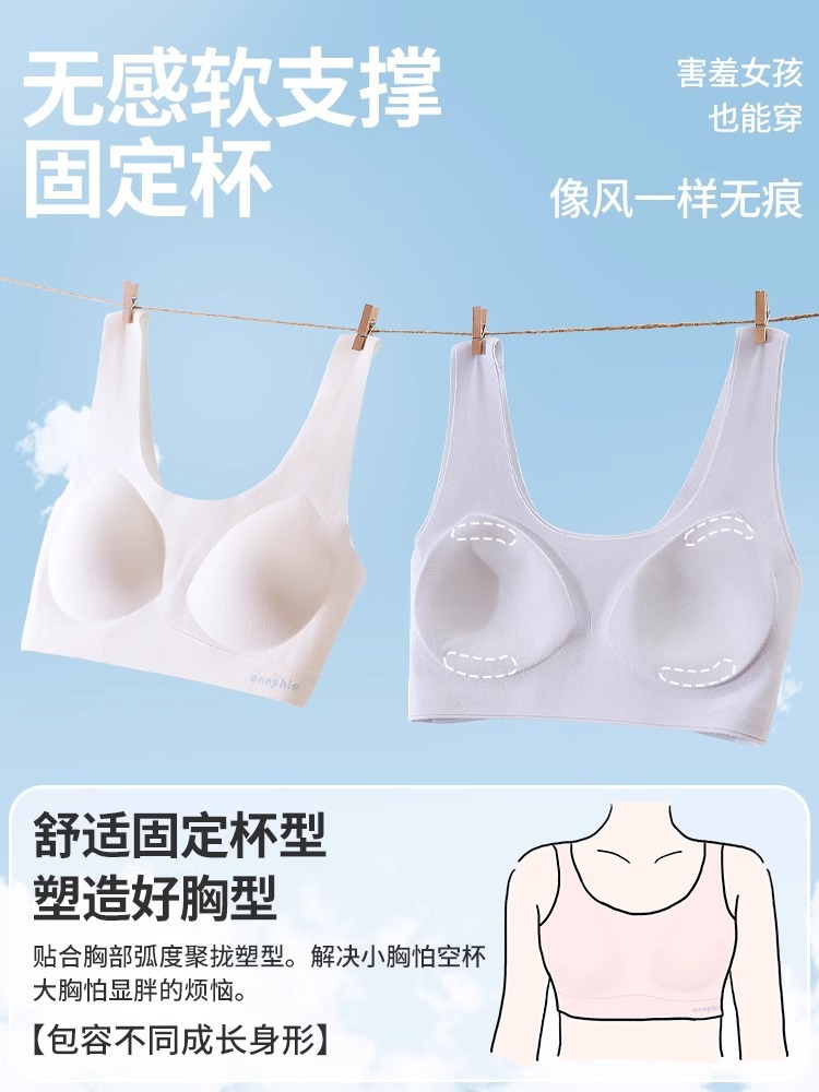 여아 발달기 속옷, 초중등 여아 심리스 조끼, 통기성 원컵 구름같은 얇고 편안한 속옷스토어 가기