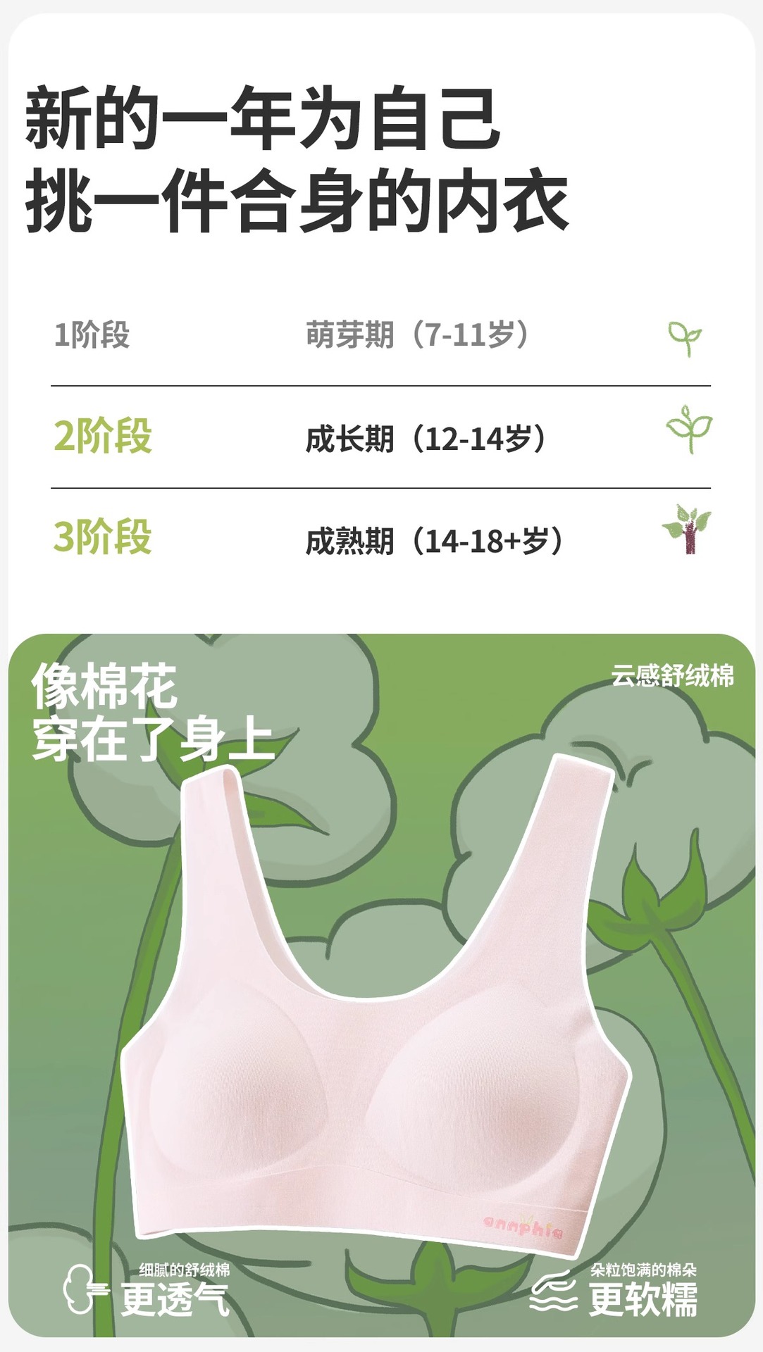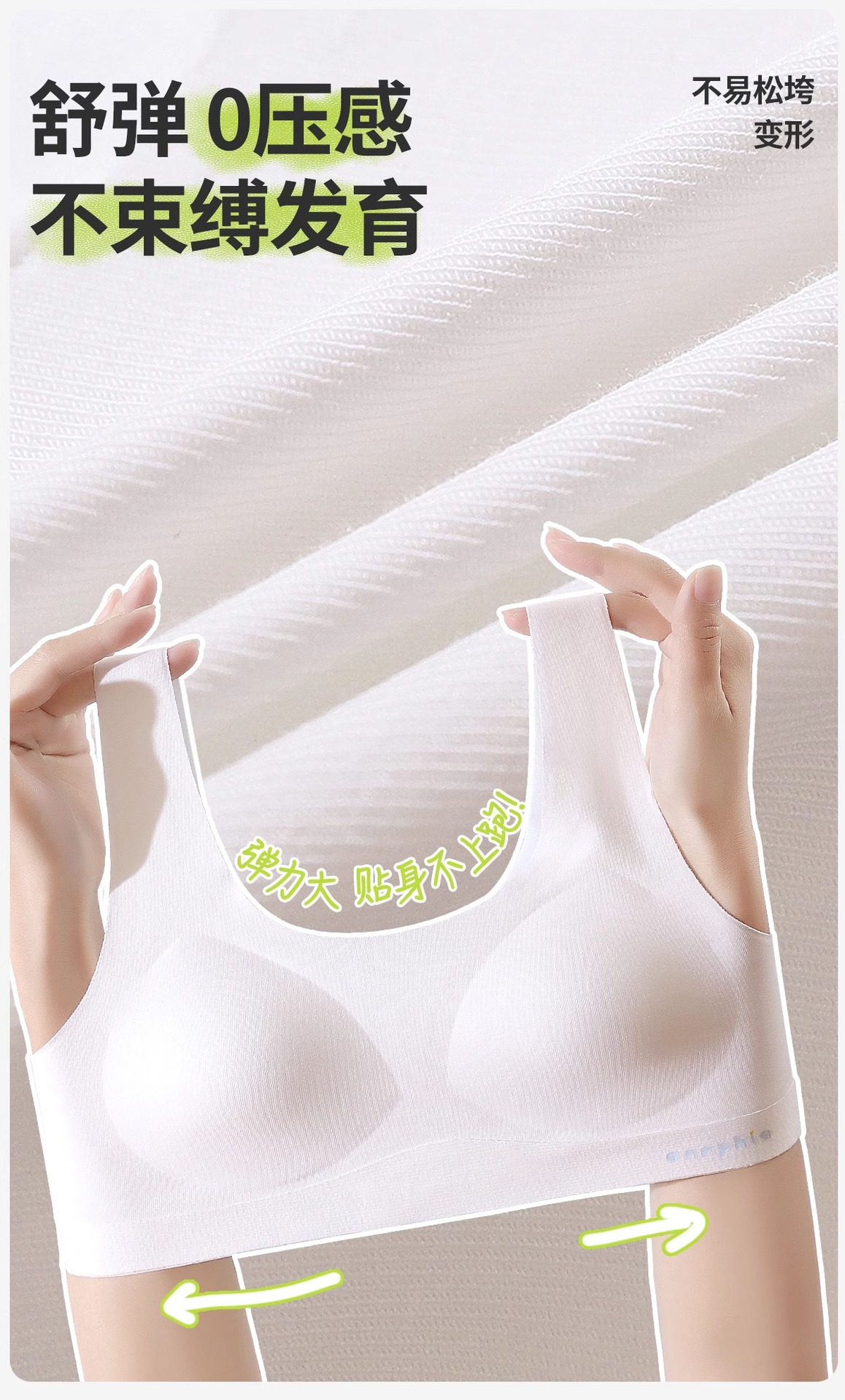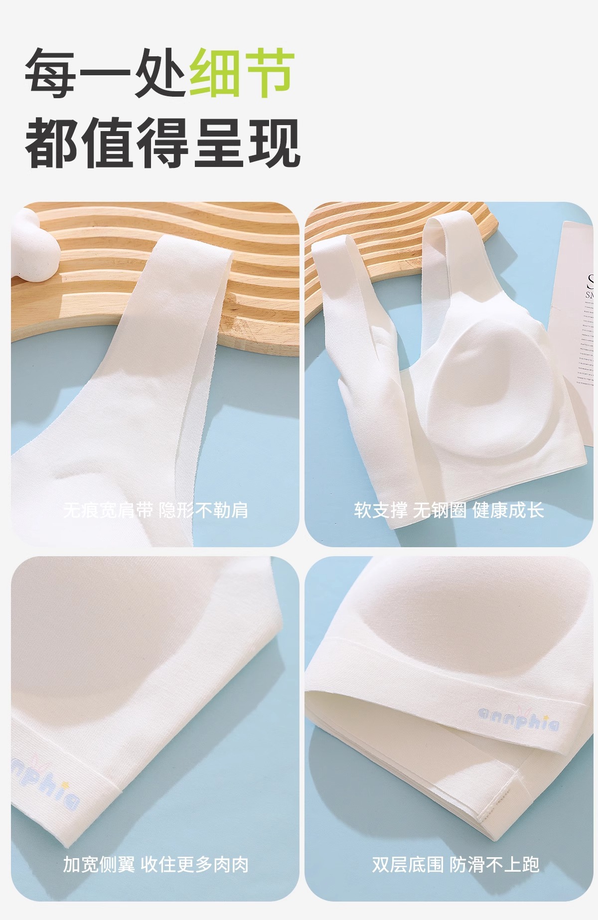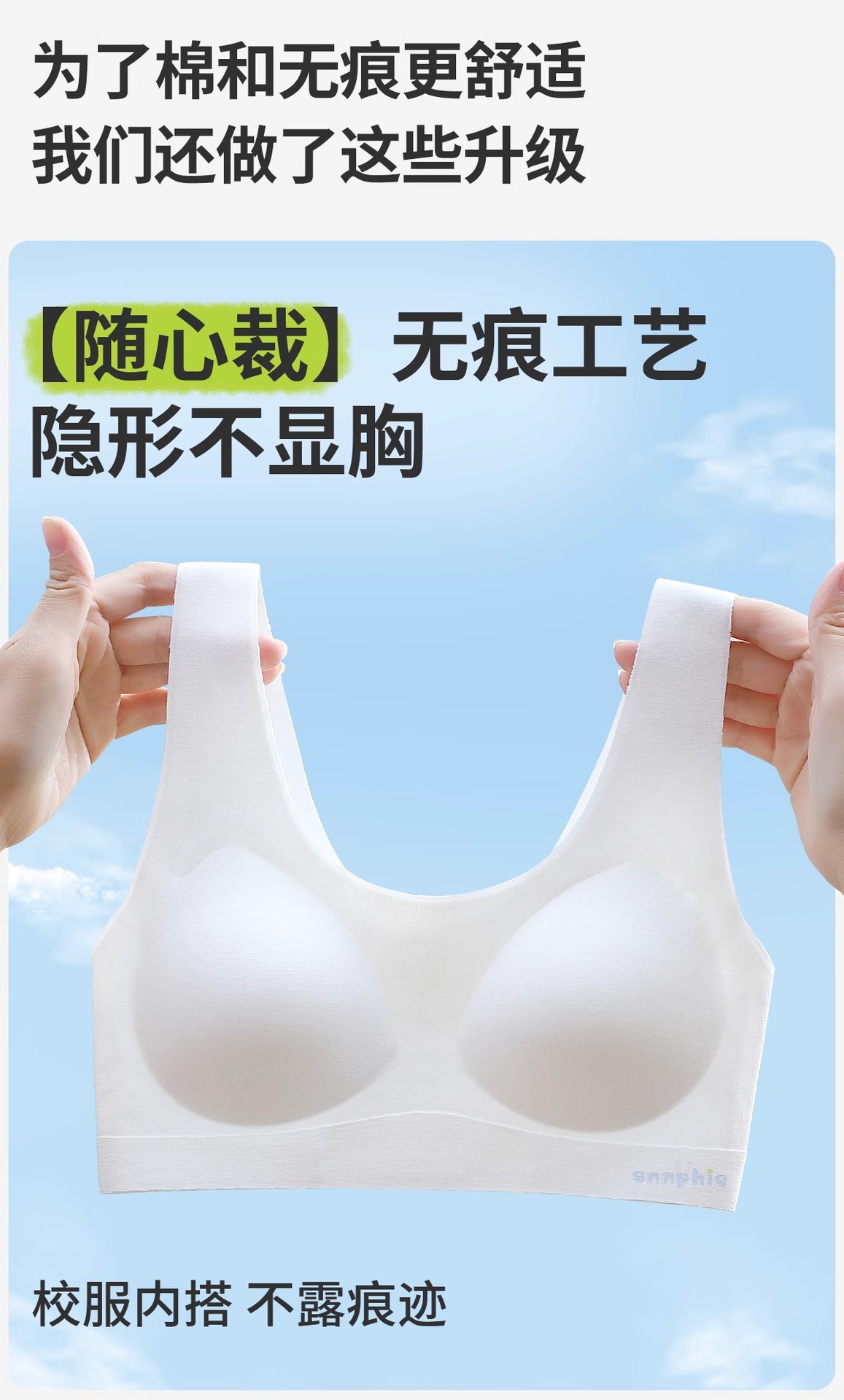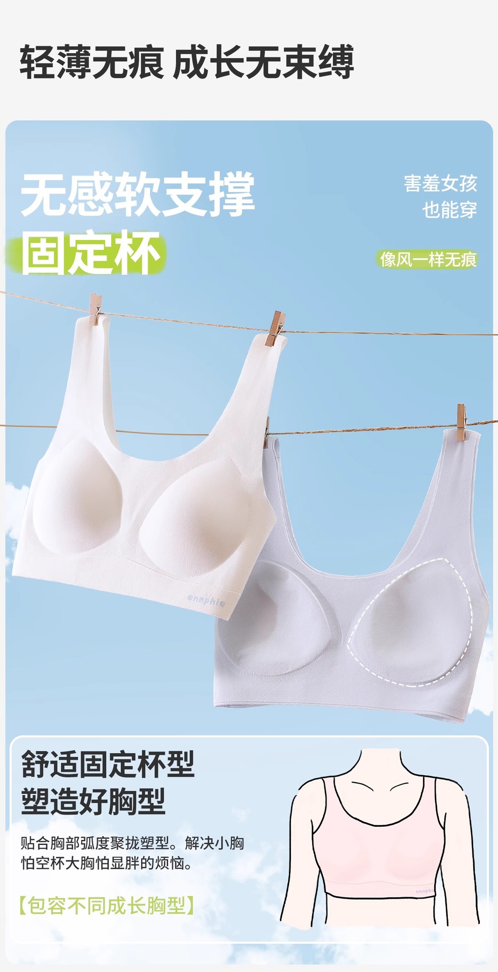 여아 발달기 속옷, 초중등 여아 심리스 조끼, 통기성 원컵 구름같은 얇고 편안한 속옷