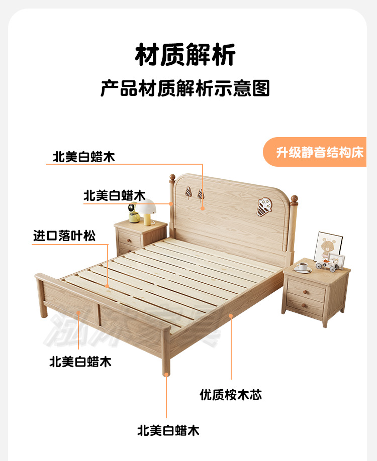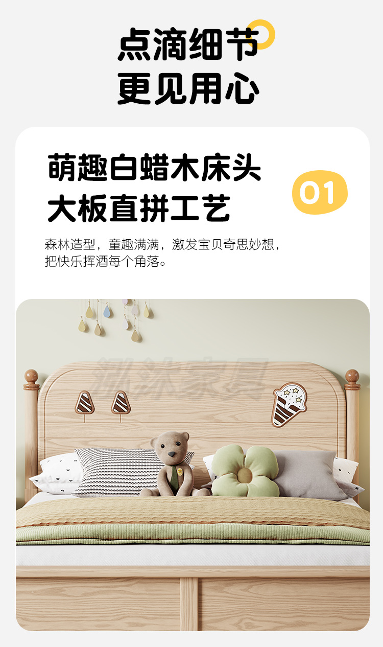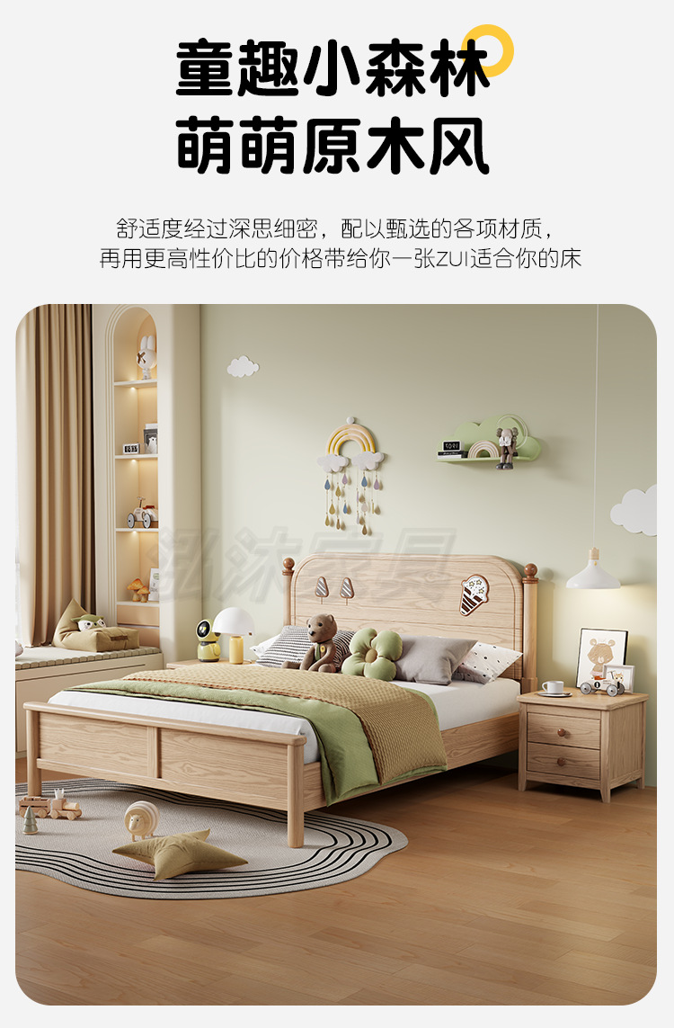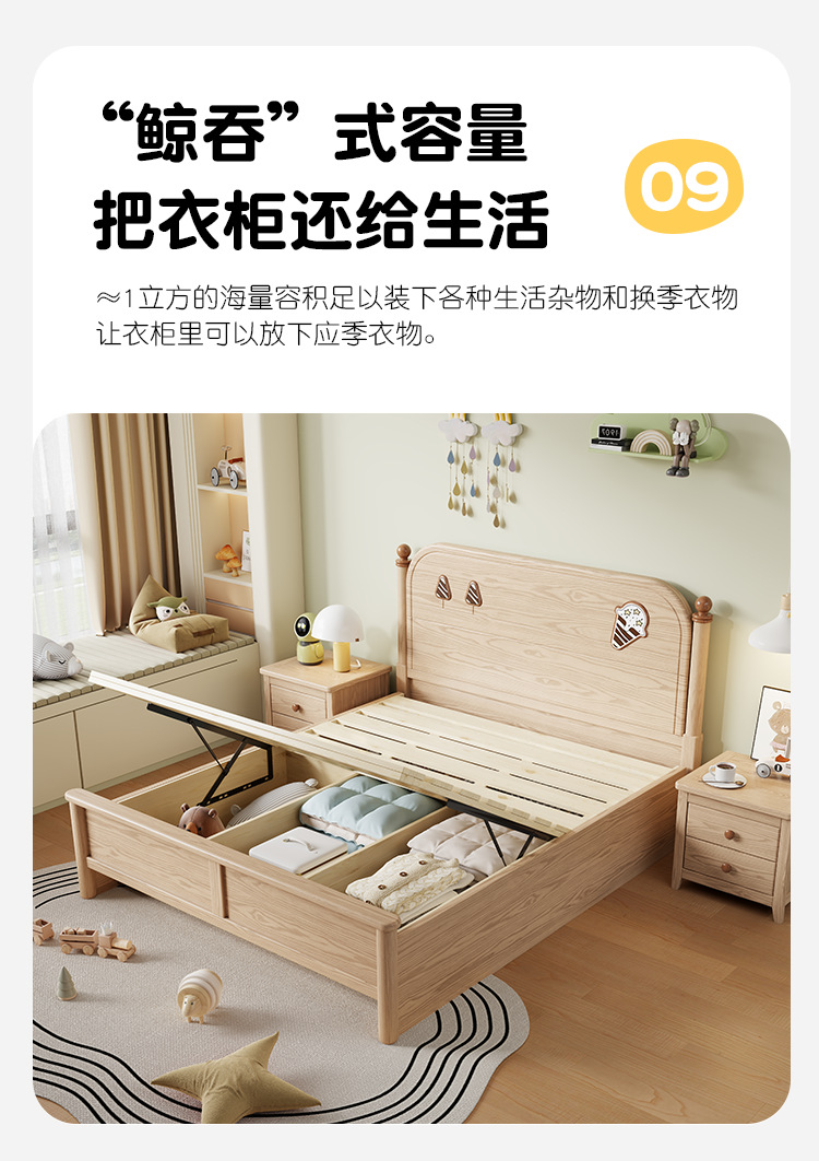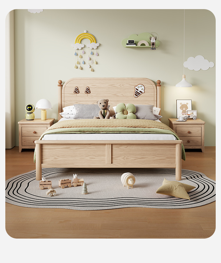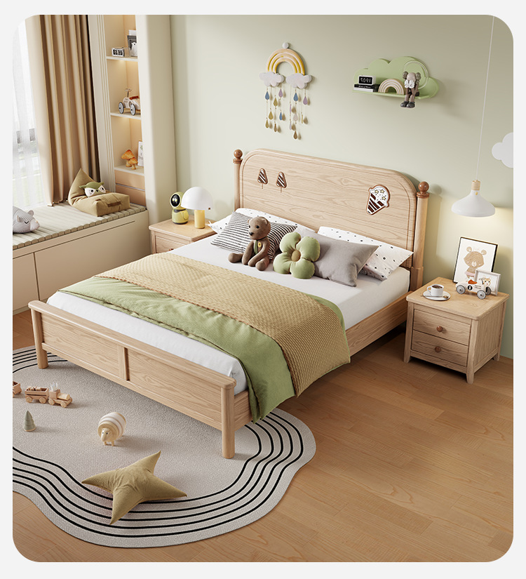 소년과 소녀를위한 물푸레나무 침대 통나무 싱글 학생 침대 1.2/1.35/1.5 작은 아파트 가정용 수납 어린이 침대스토어 가기