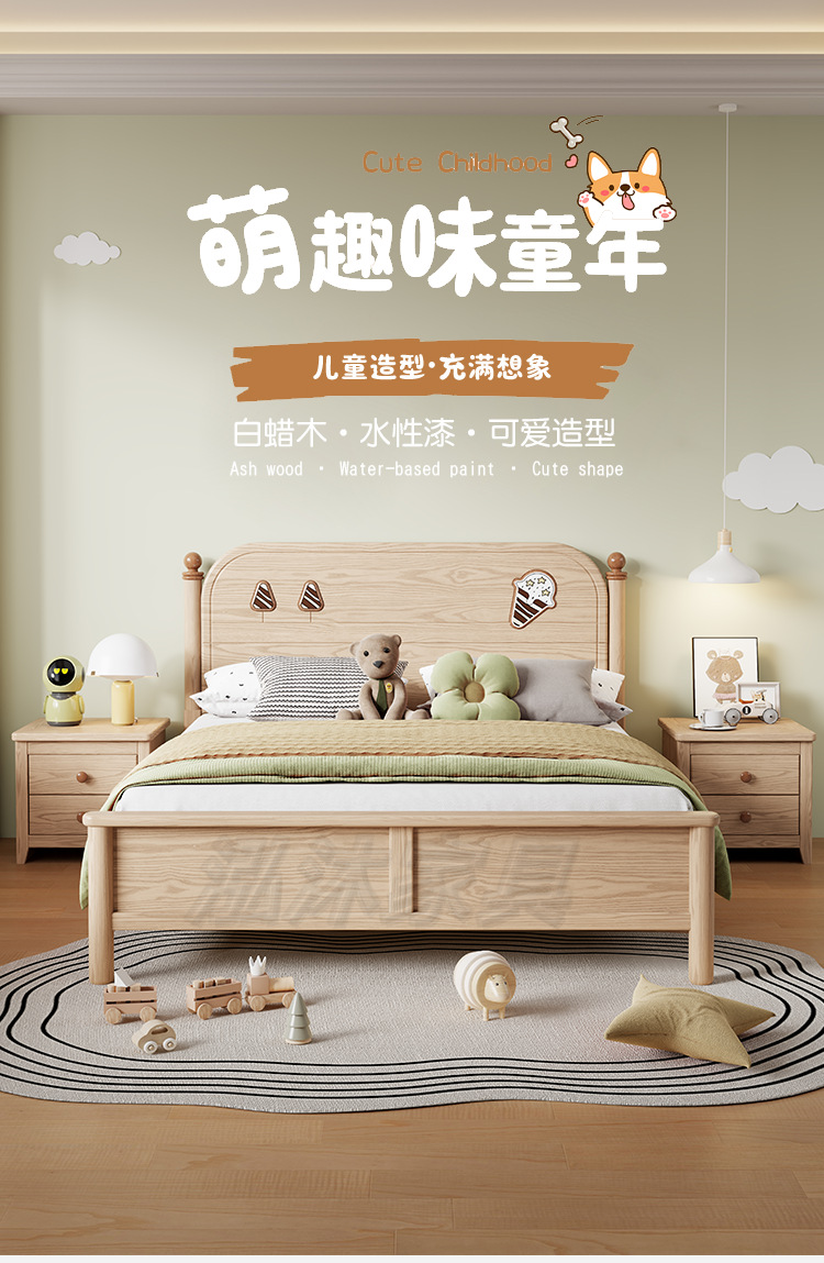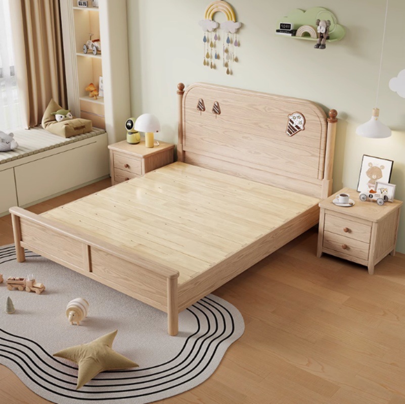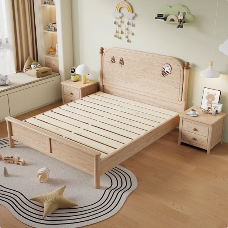 소년과 소녀를위한 물푸레나무 침대 통나무 싱글 학생 침대 1.2/1.35/1.5 작은 아파트 가정용 수납 어린이 침대