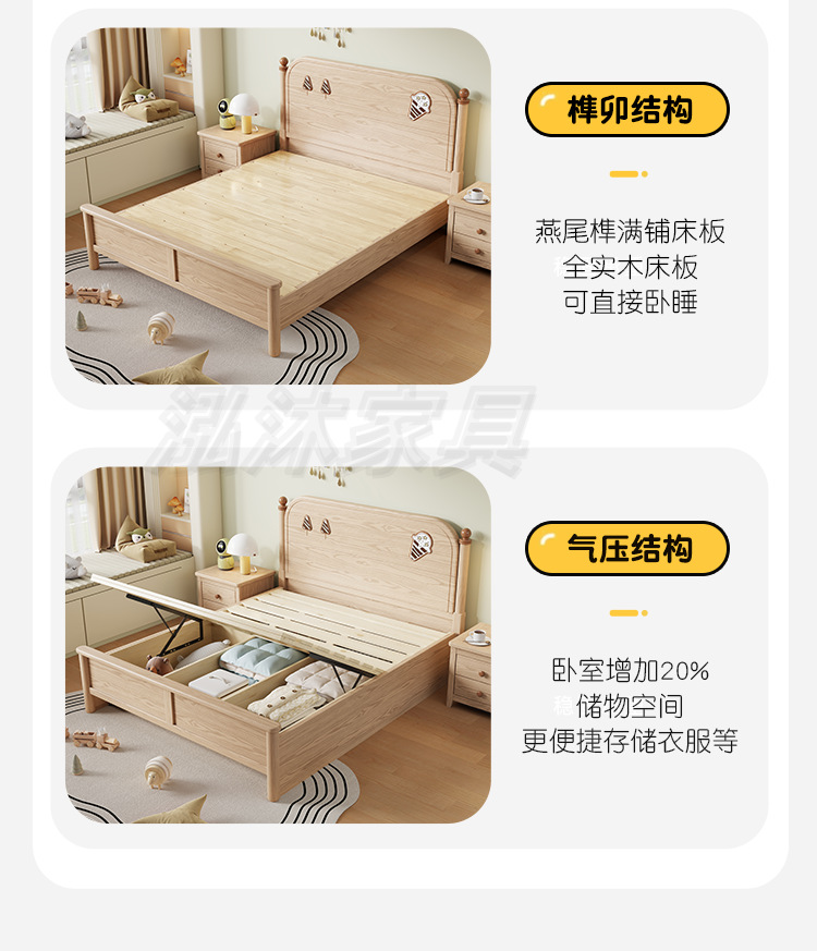 • 공압 구조(모두 원목 상자) + 침대 옆 탁자 1개