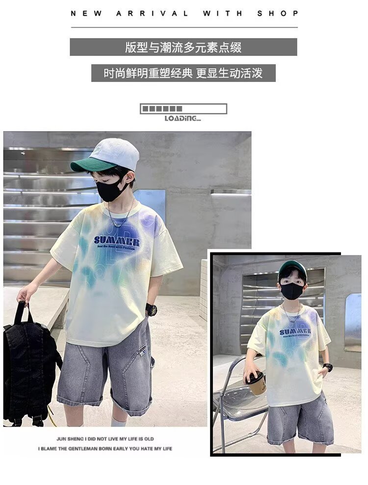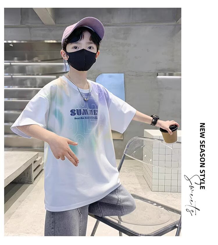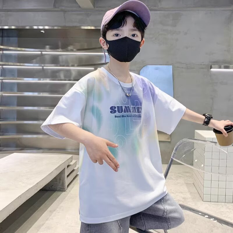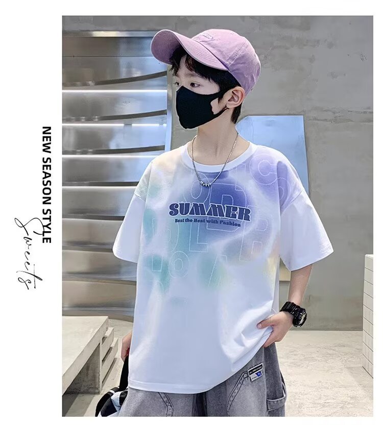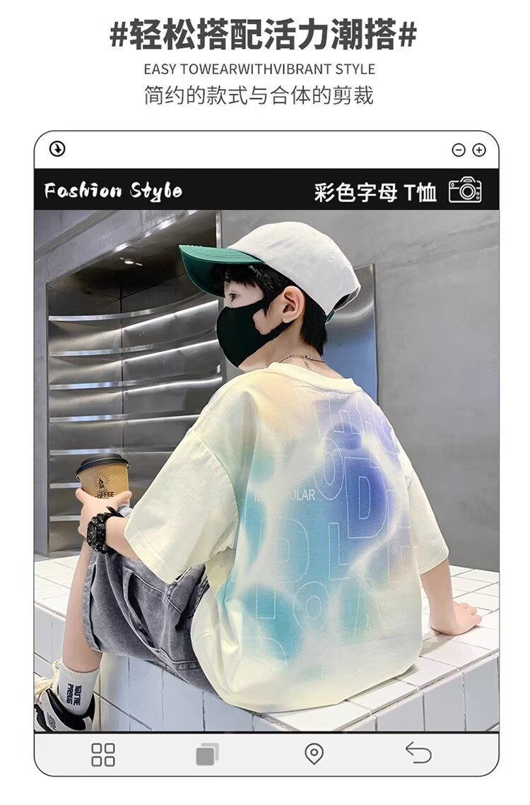 소년 반팔 티셔츠 여름 새 스타일 2025 세련되고 세련된 소년 중대형 아동상의 트렌디하고 멋진 아동 캐주얼 짧은 티셔츠스토어 가기