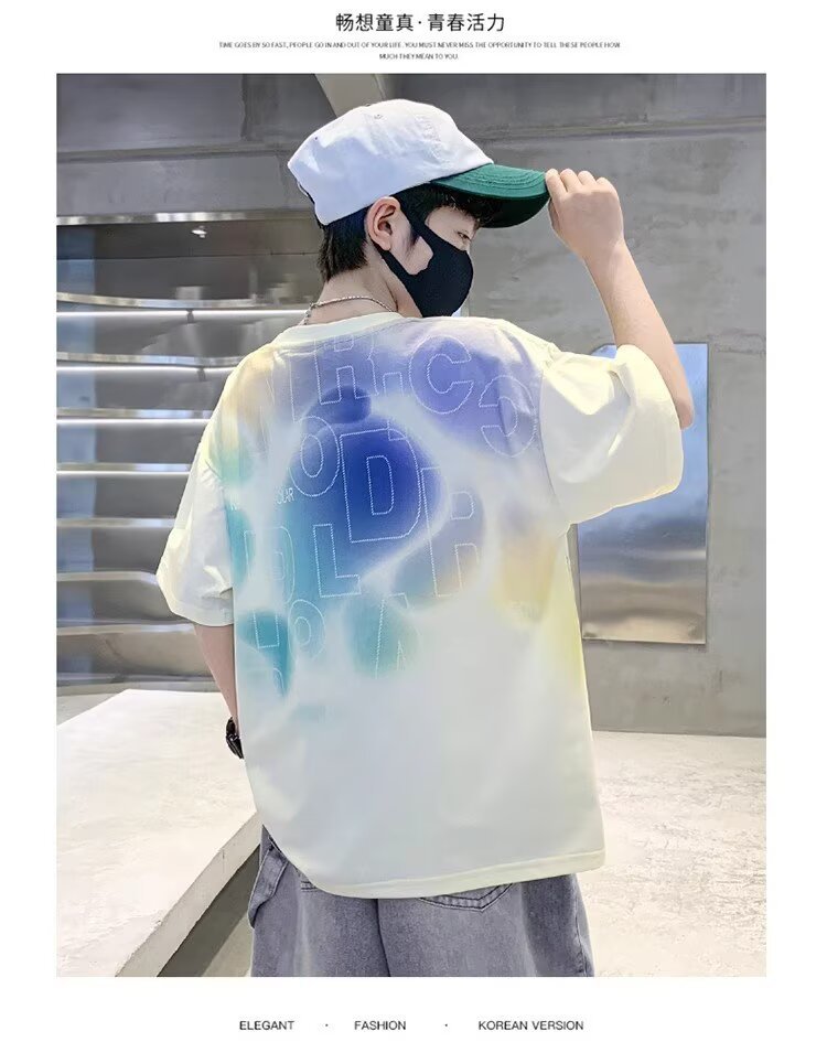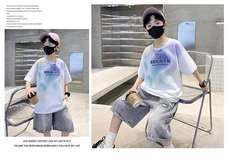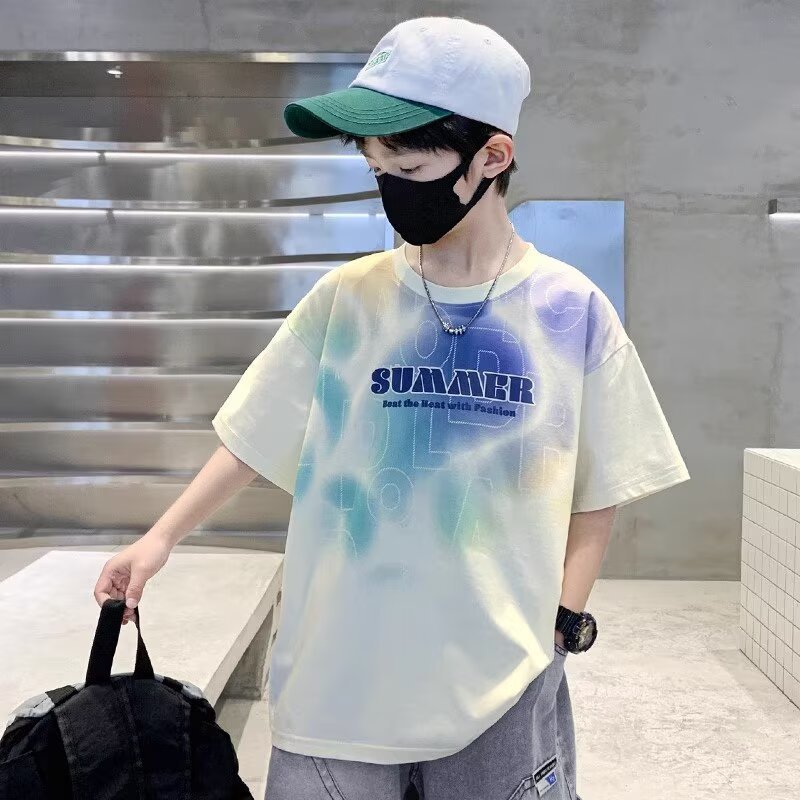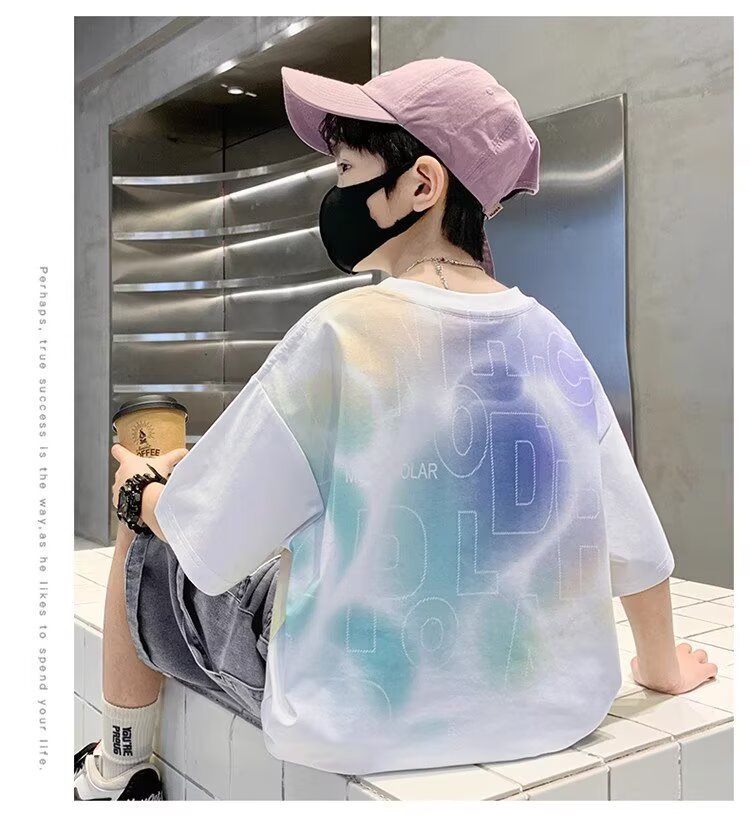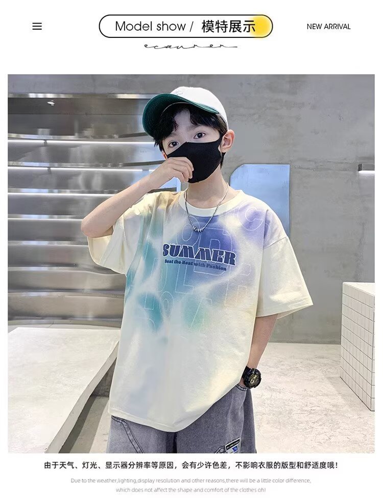 소년 반팔 티셔츠 여름 새 스타일 2025 세련되고 세련된 소년 중대형 아동상의 트렌디하고 멋진 아동 캐주얼 짧은 티셔츠스토어 가기