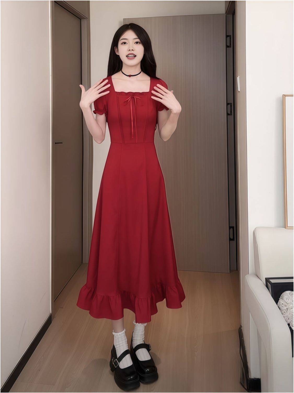 플러스 사이즈 디자인 패셔너블 드레스 3웨어 드로스트링 미드 스커트 여성 여름 허리 스퀘어 칼라 아름다운 A라인 롱 스커트
