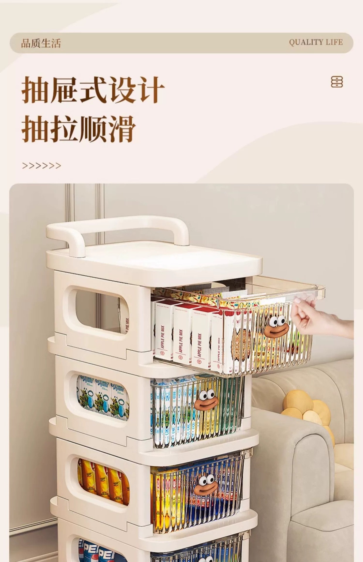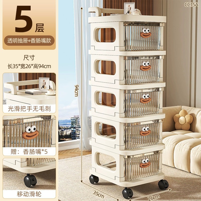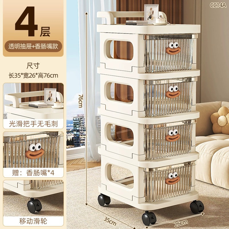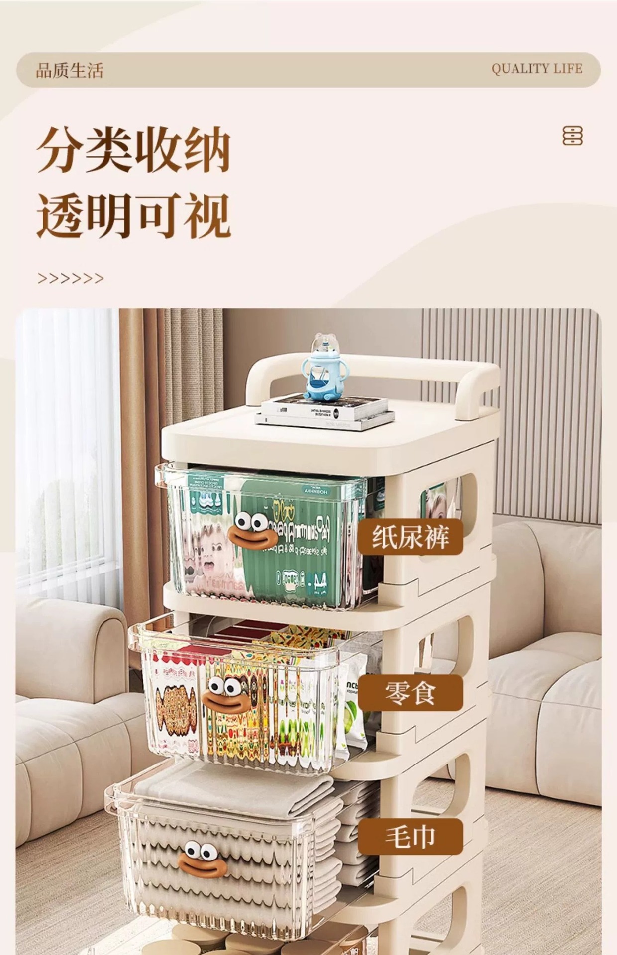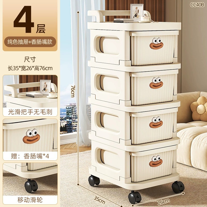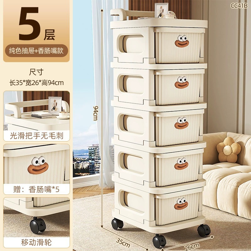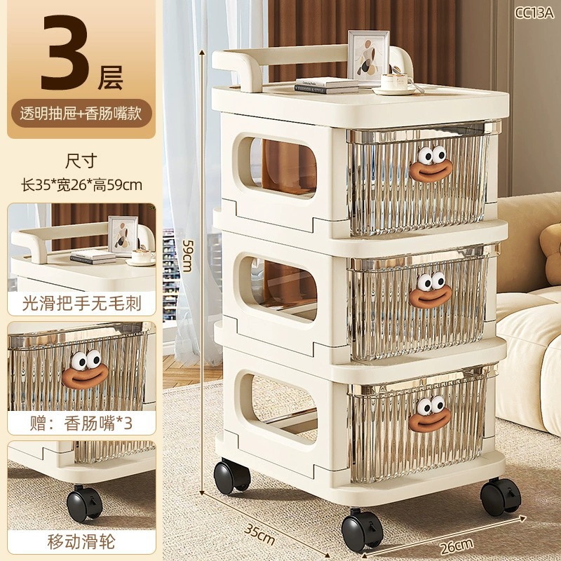 트롤리 수납 선반, 바닥 서랍형 스낵 선반, 가정용 다층 아기 수납 장난감 및 잡화 수납 캐비닛