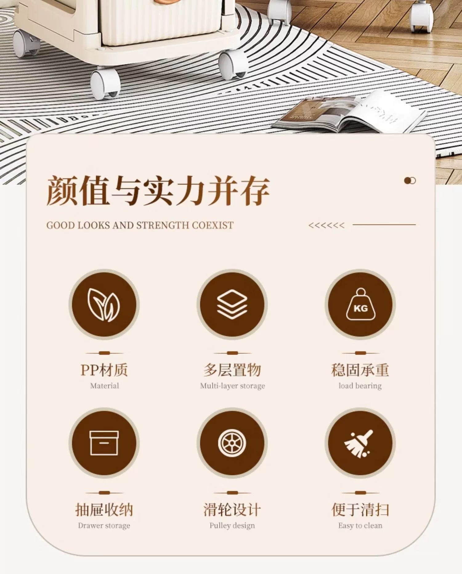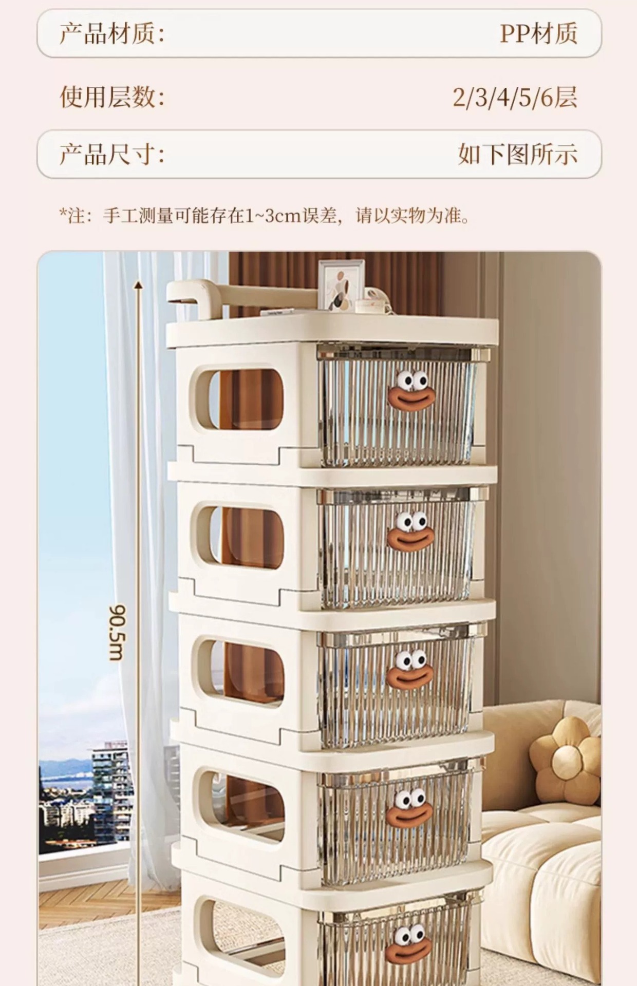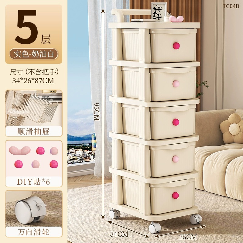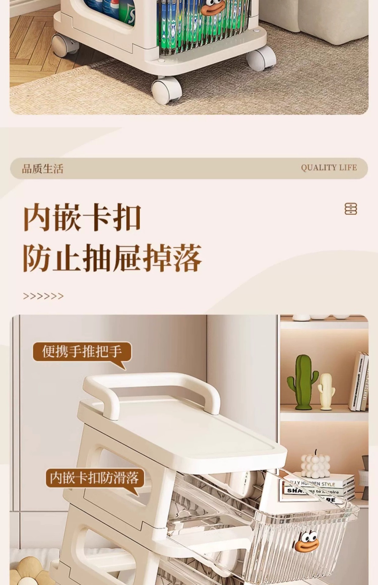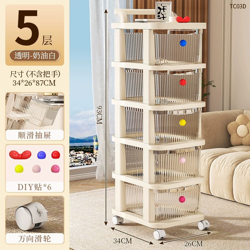 트롤리 수납 선반, 바닥 서랍형 스낵 선반, 가정용 다층 아기 수납 장난감 및 잡화 수납 캐비닛