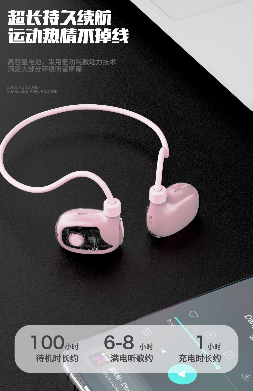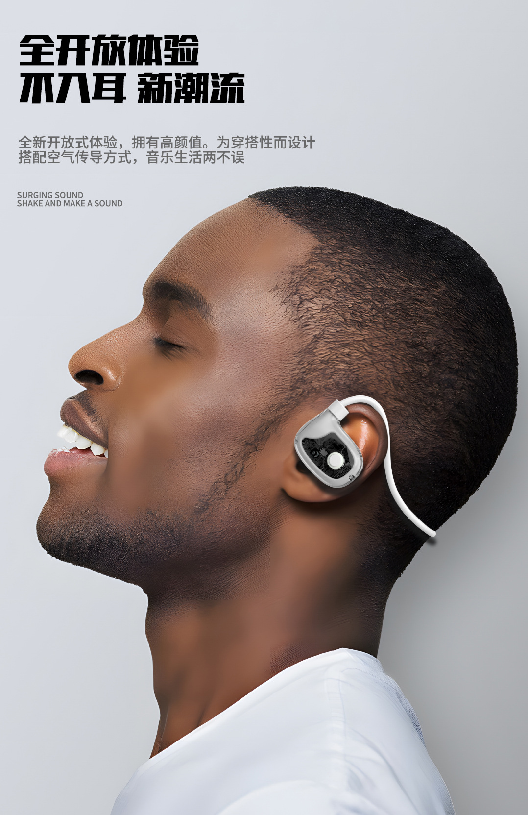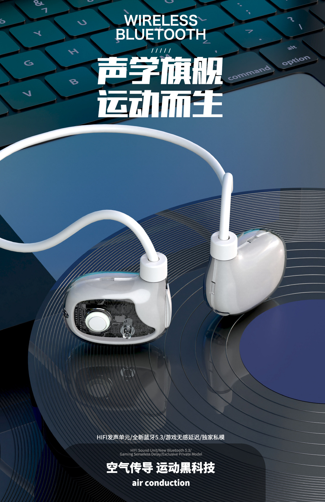 전체 네트워크에서 가장 인기 있는 개인 모델 공기 골전도 블루투스 헤드셋. 귀에 꼭 맞지 않는 오픈형 스포츠 헤드셋, 매우 뛰어난 음질