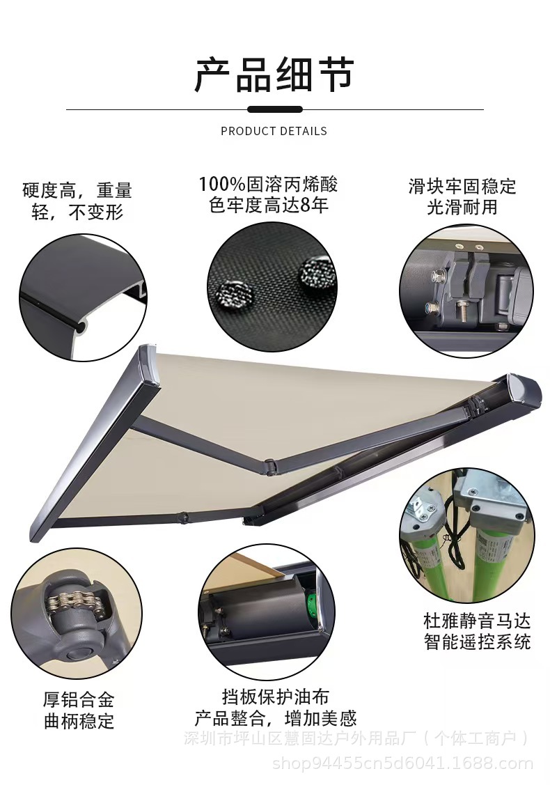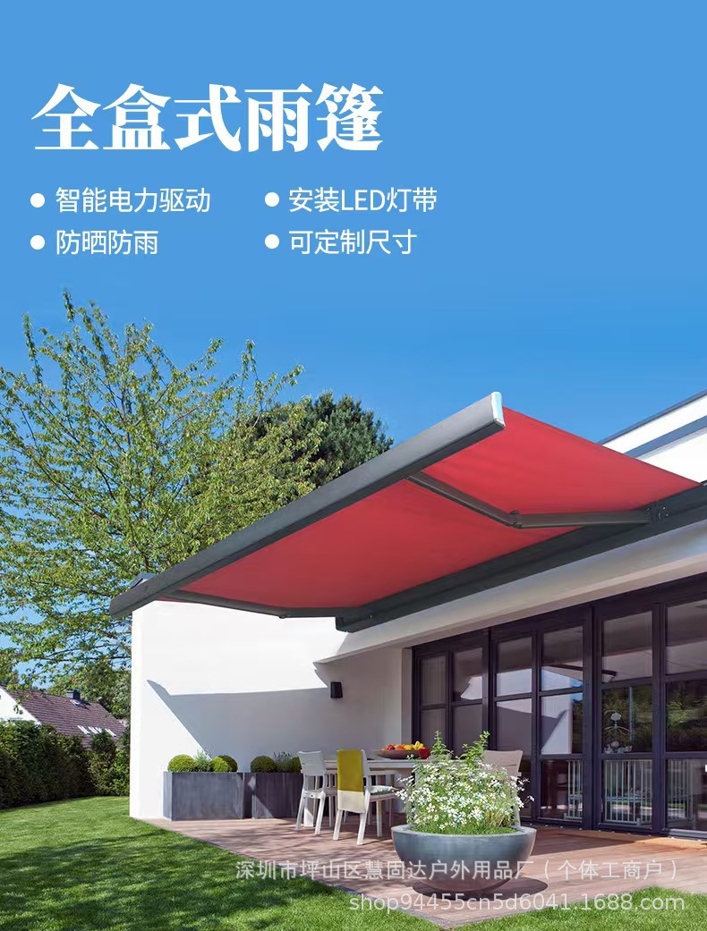 맞춤형 대외 무역 수출 전기 풀 박스형 개폐식 차양, 조명 차양 도매 가능스토어 가기