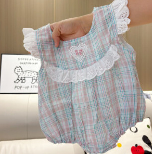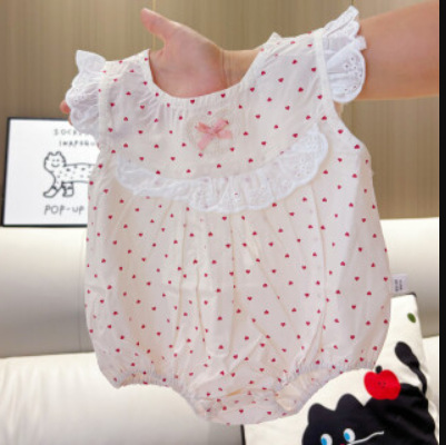 여름 아기 얇은 민소매 바디수트, 상큼한 스타일의 여자 아기 롬퍼, 케이크 스타일 바디스커트