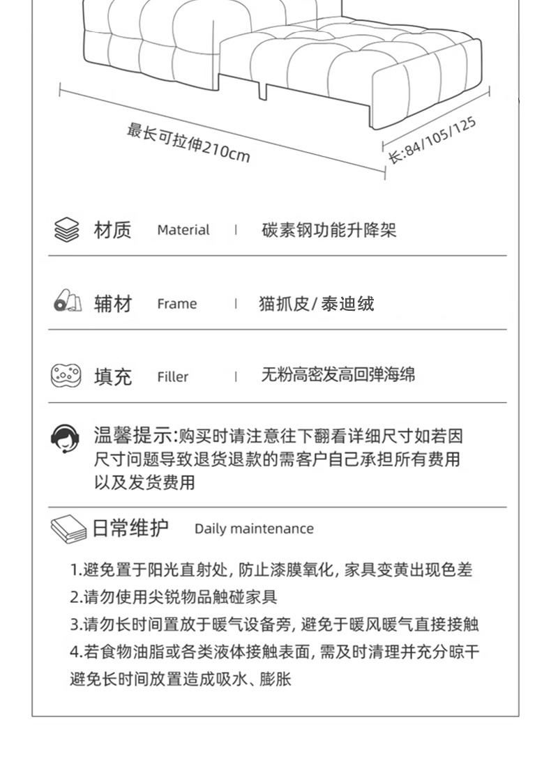 • 탈착식 등받이 [1.05m 오프화이트 모델] 업그레이드된 고양이 긁는 가죽, 색상 맞춤 가능 - 맞춤 가능