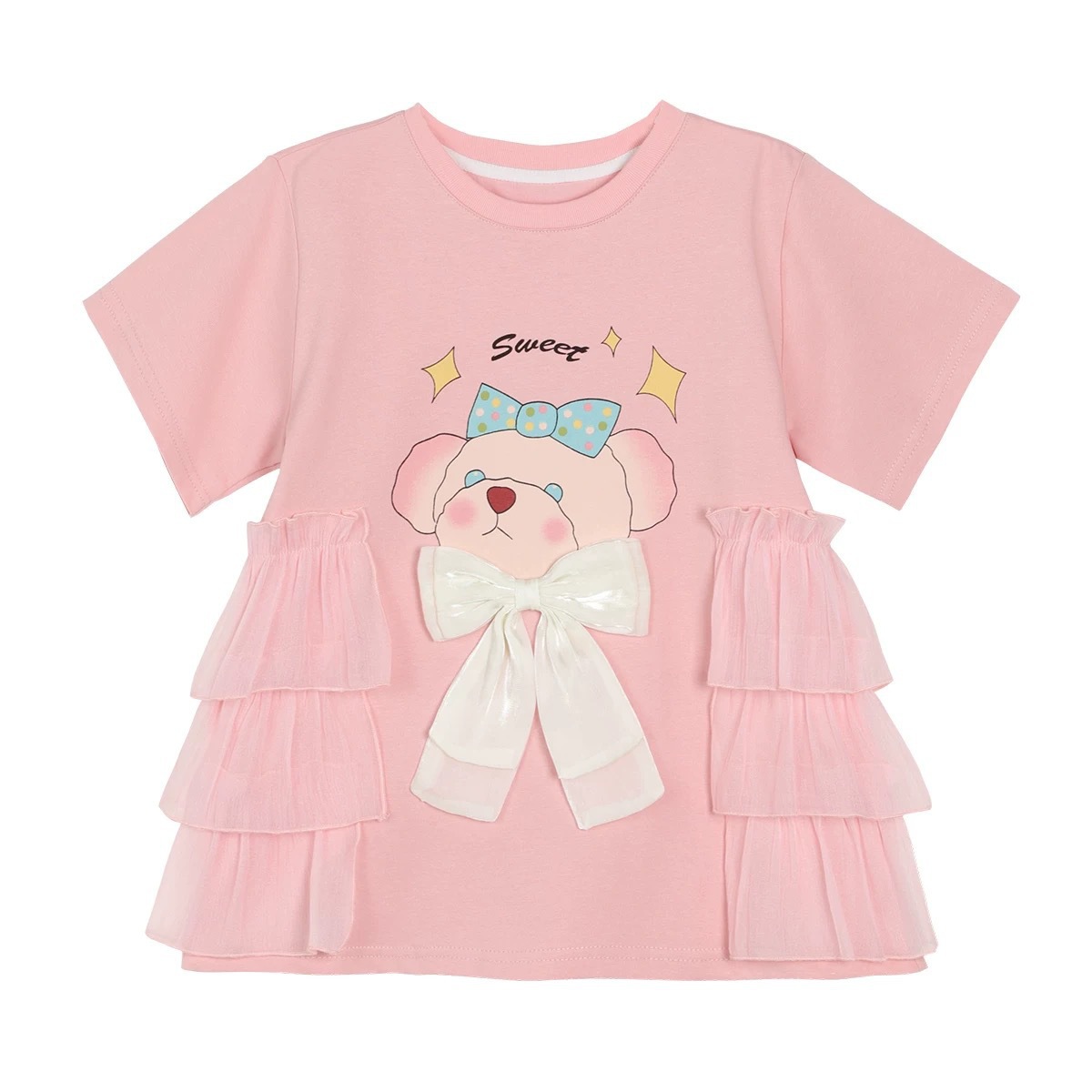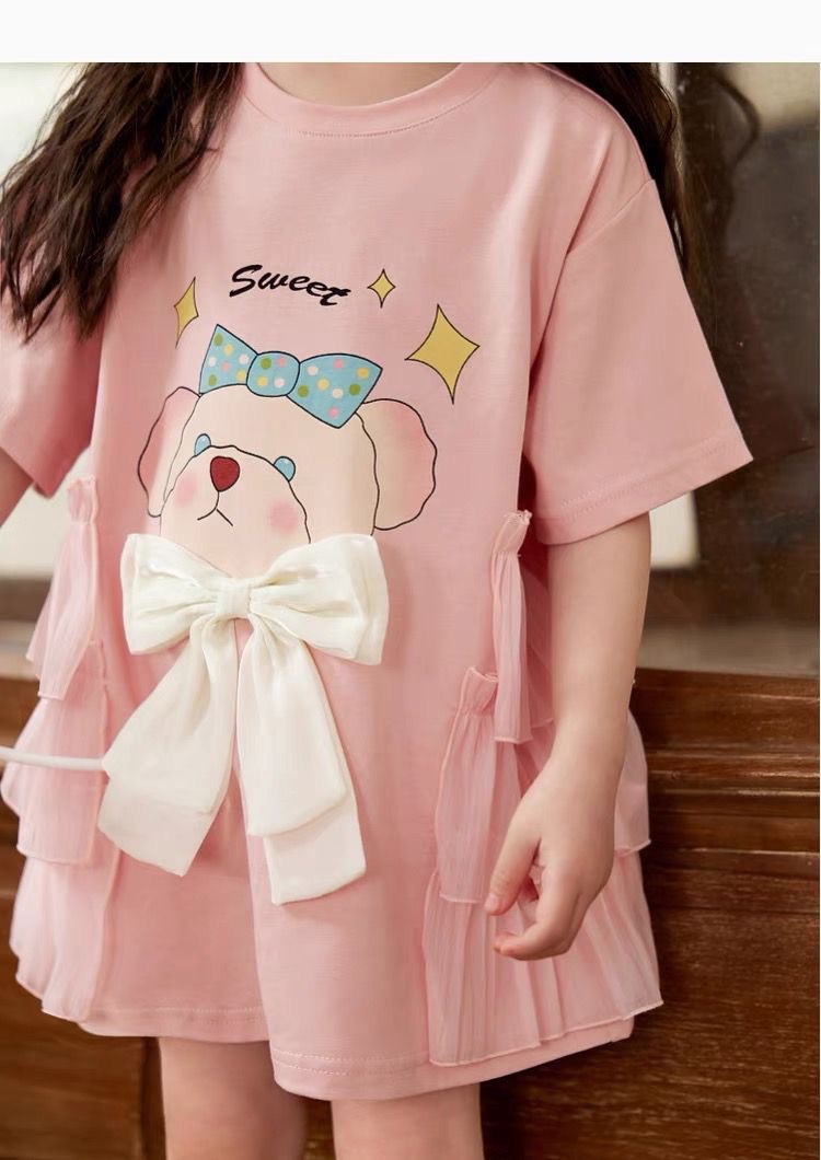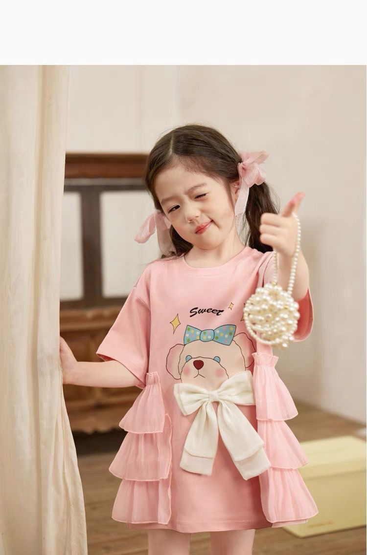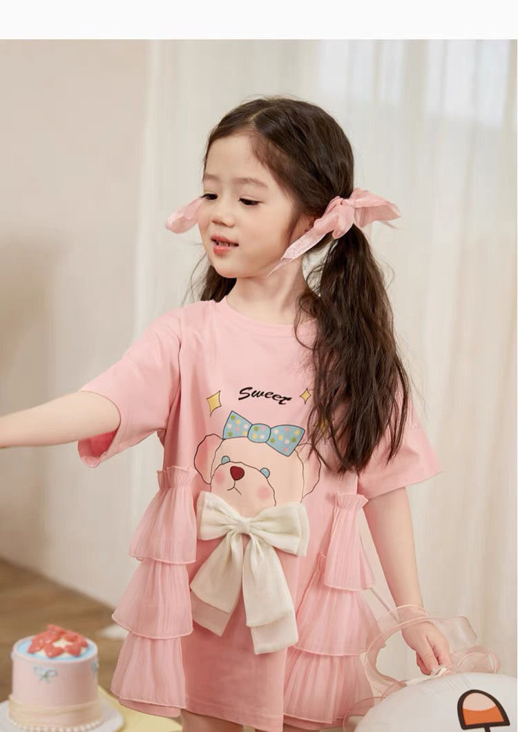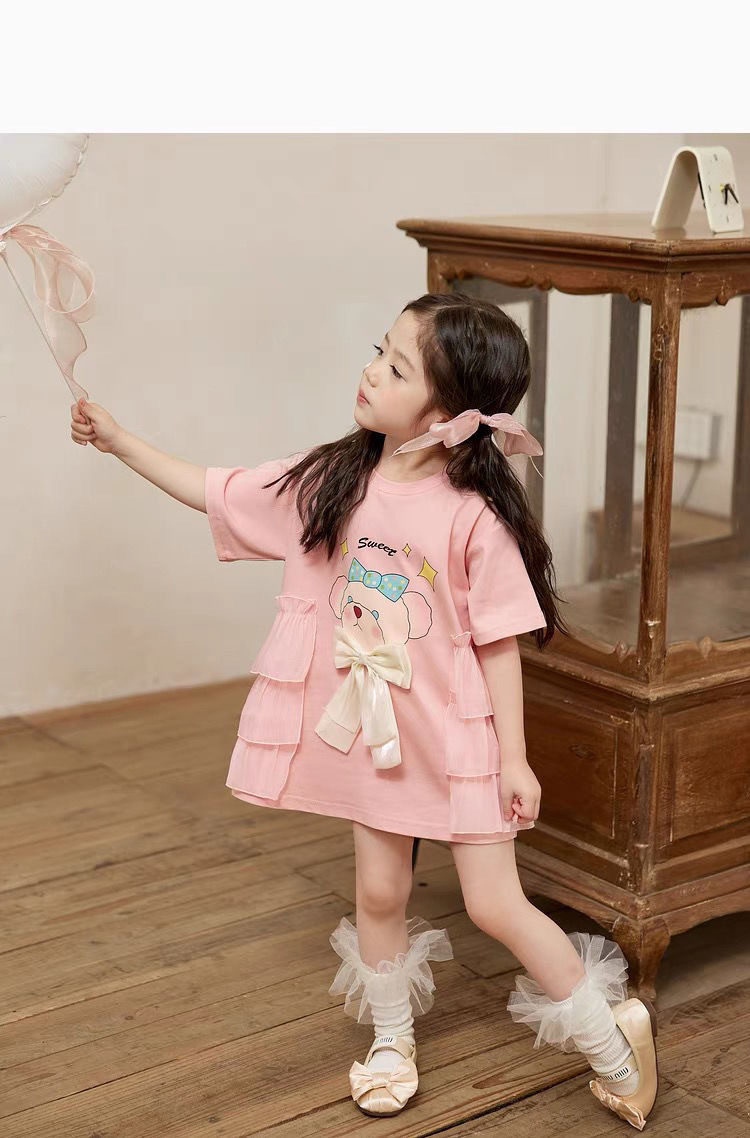 여자 반팔 티셔츠 여름 2025 새로운 아동복 여자 여름 아동 여름상의 트렌디하고 멋진 드레스