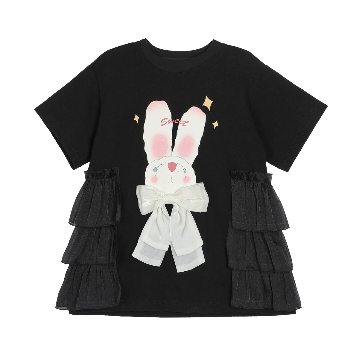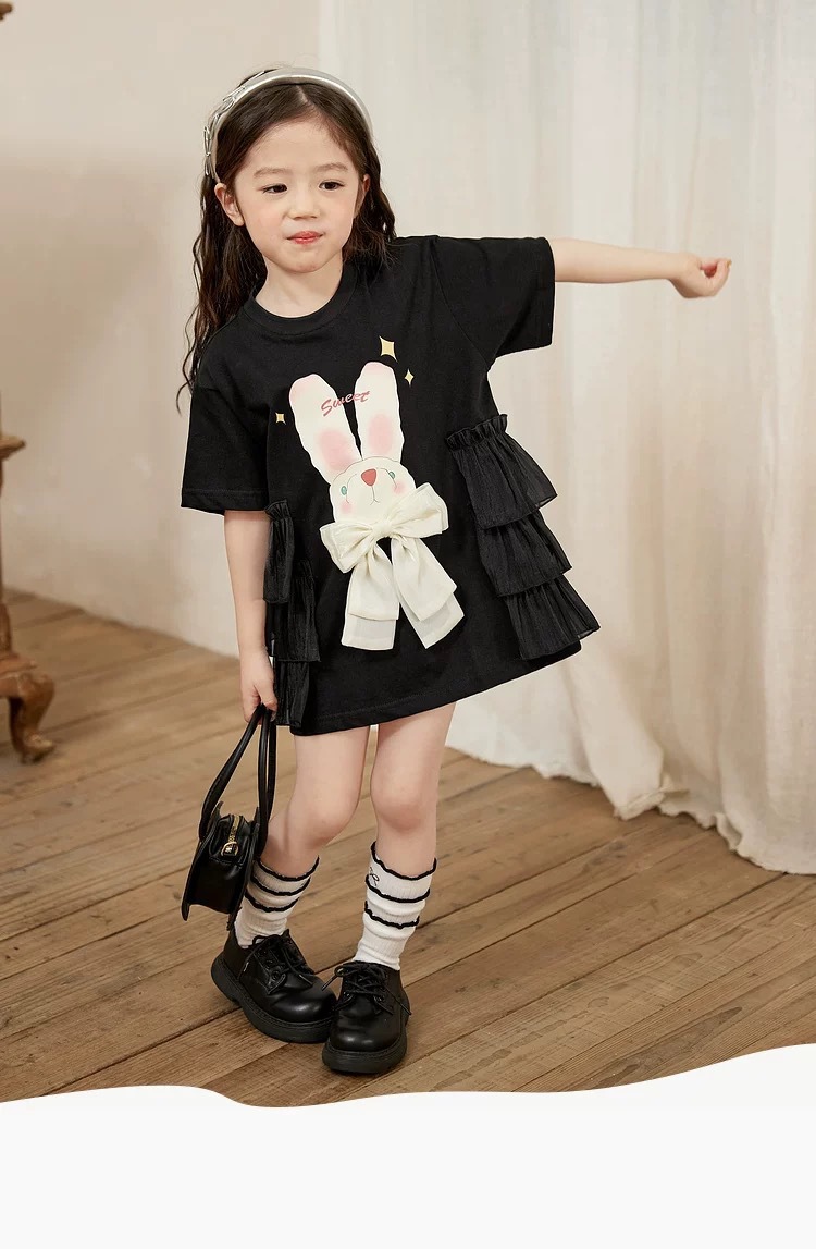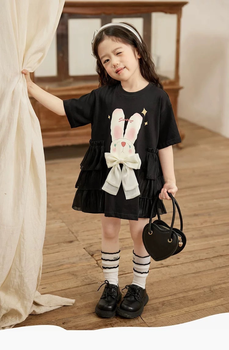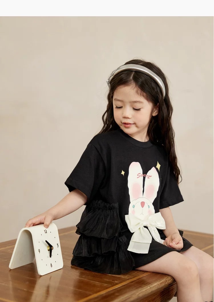 여자 반팔 티셔츠 여름 2025 새로운 아동복 여자 여름 아동 여름상의 트렌디하고 멋진 드레스