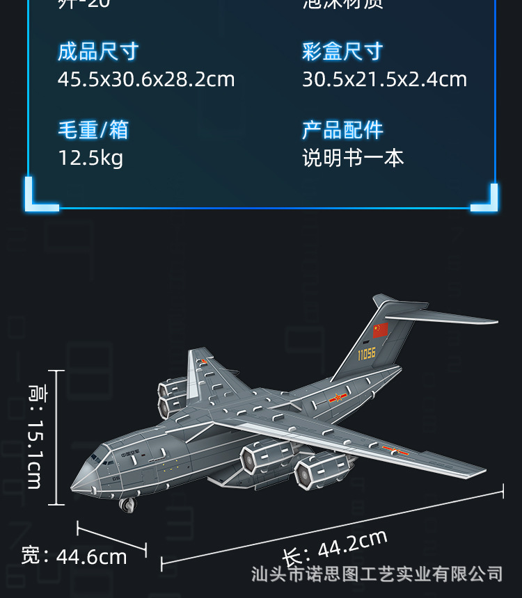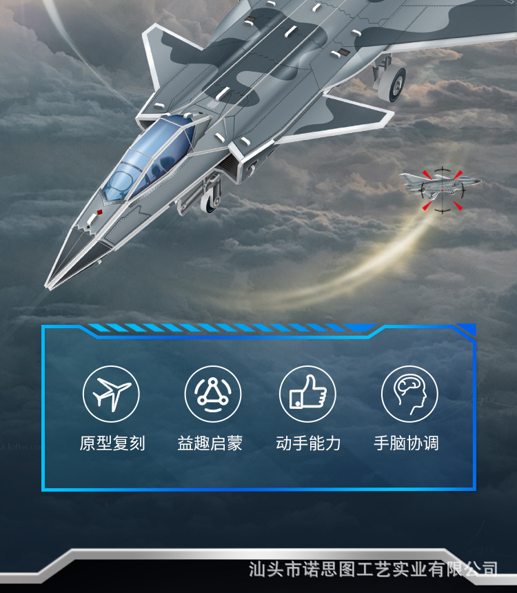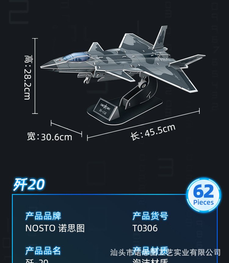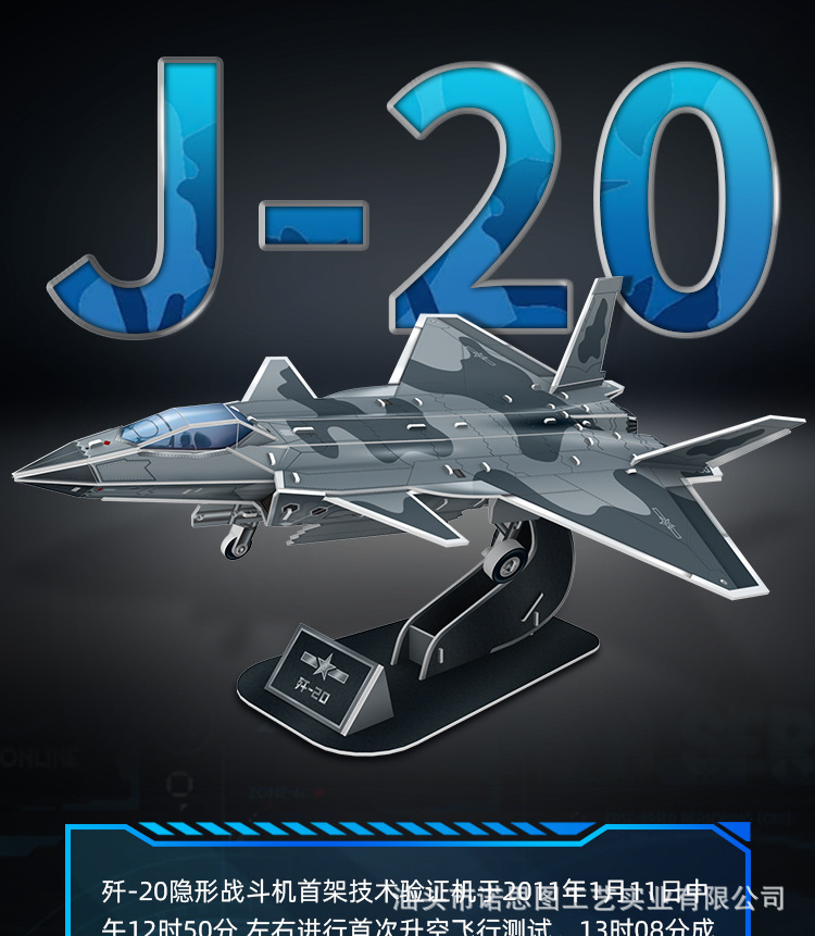 3D 입체 퍼즐 DIY 전투기 모델 J-20 폼 비행기 종이 모형 교구 소년 선물 항공 전시회