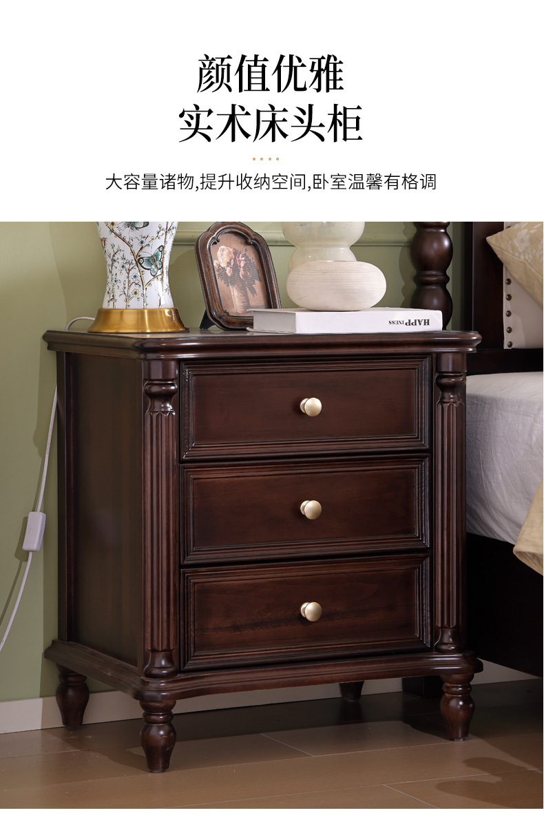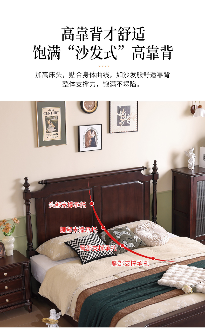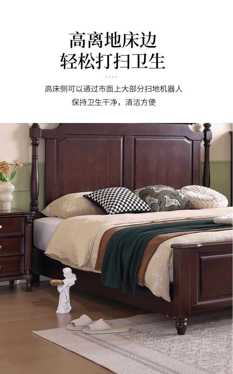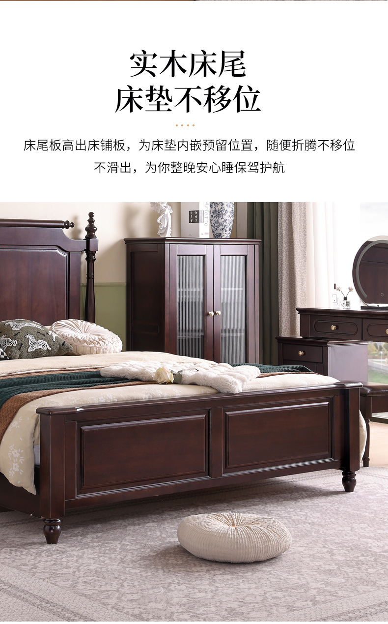 미국산 원목 침대, 블랙 호두 더블 침대, 1.8m 중세 스타일, 심플하고 아름다운 복고풍 침대, 침실 하이박스 가구