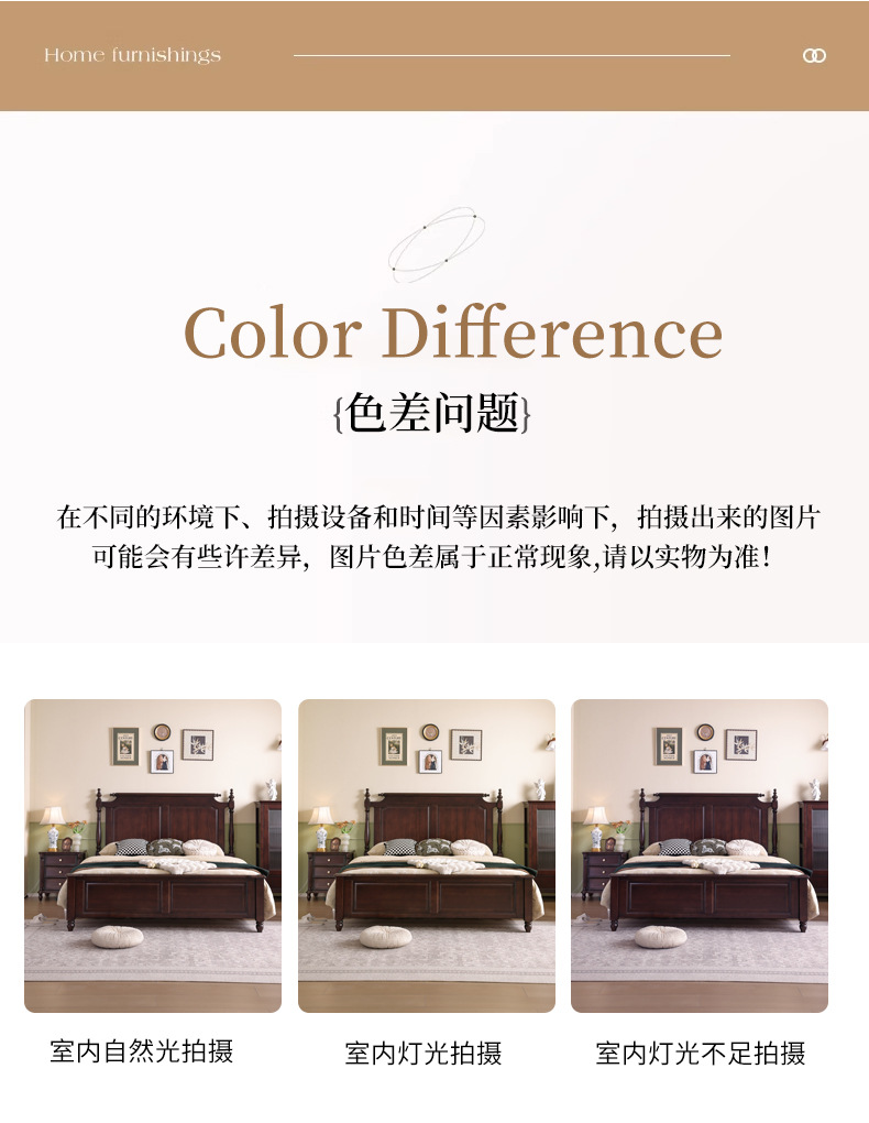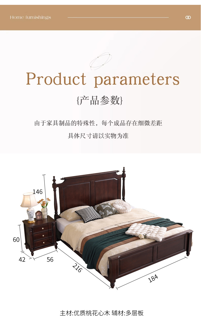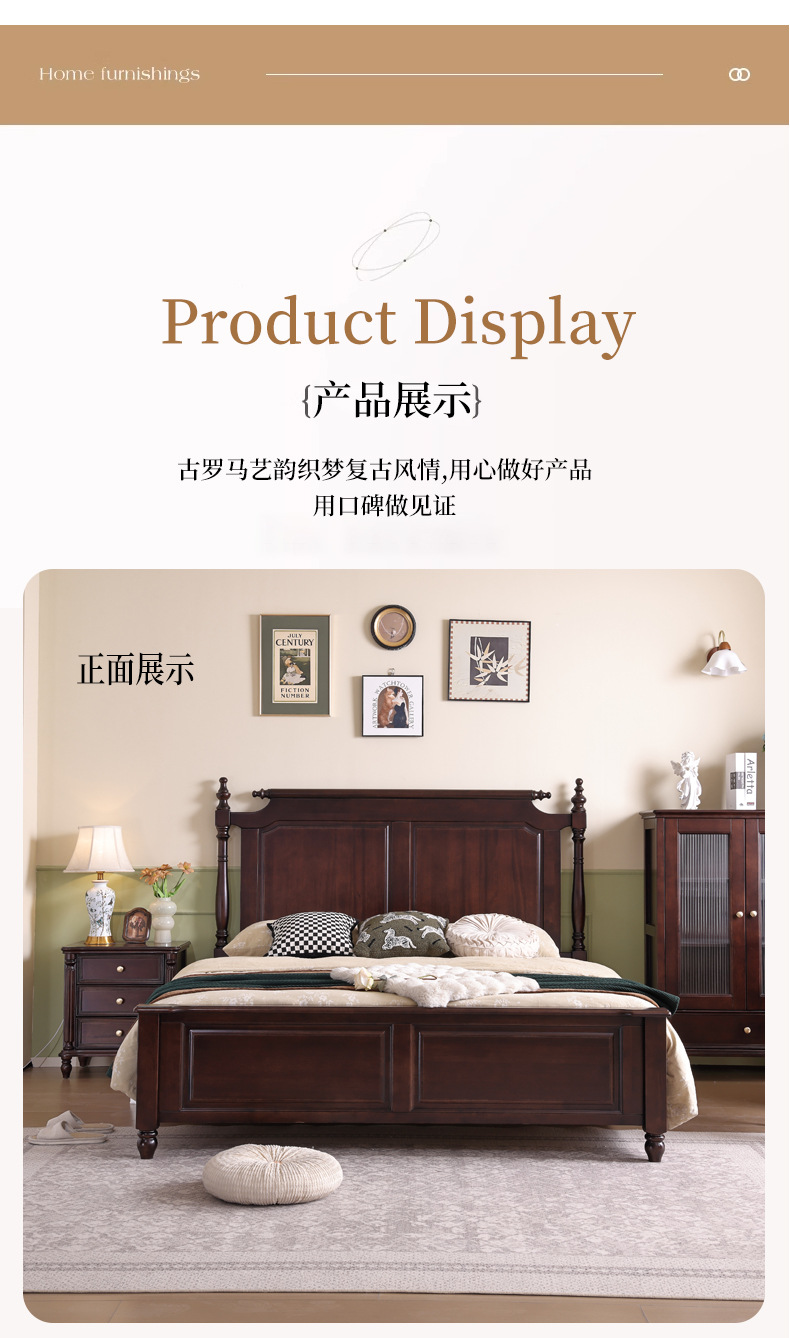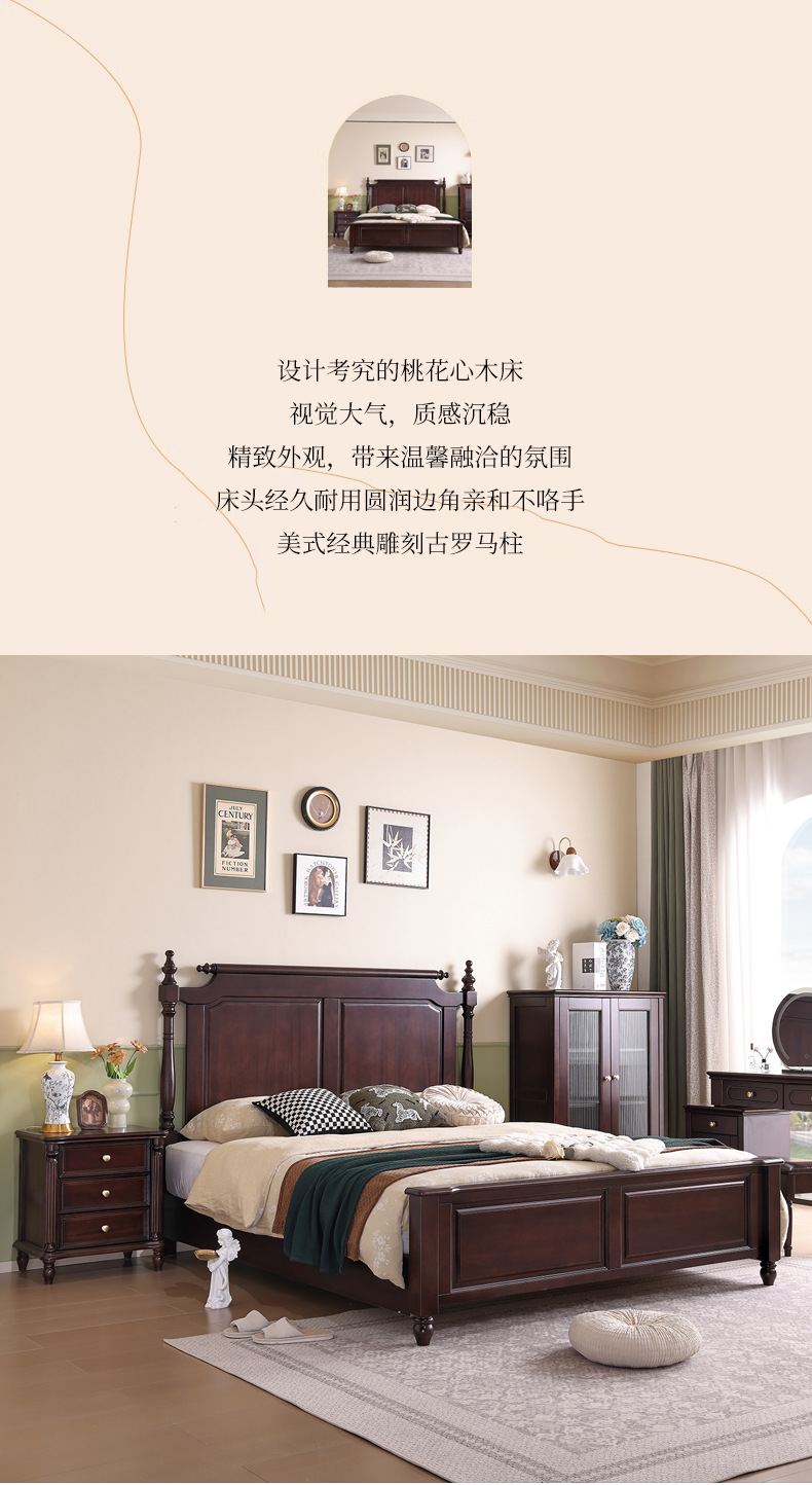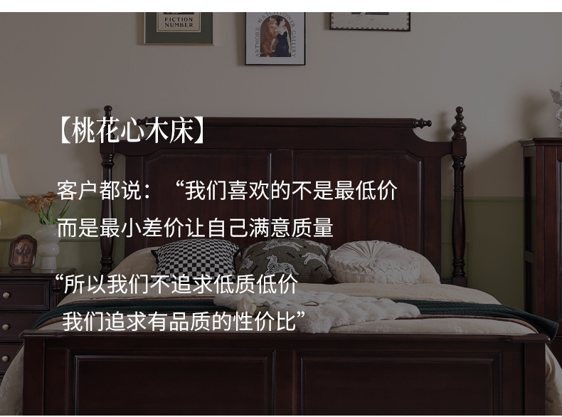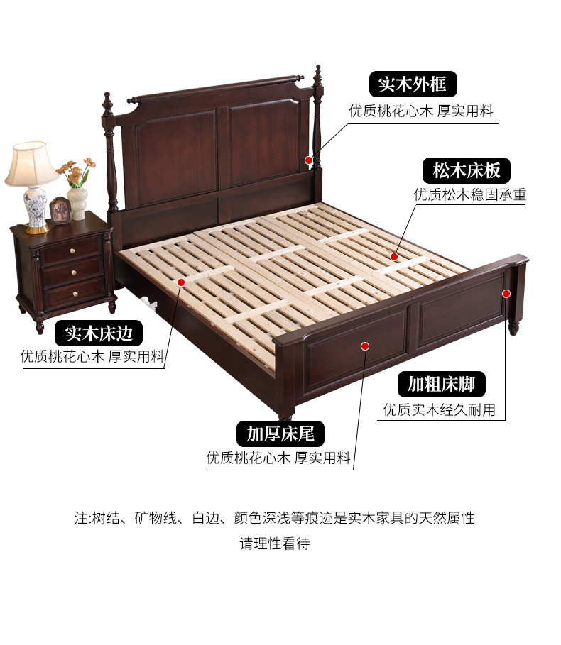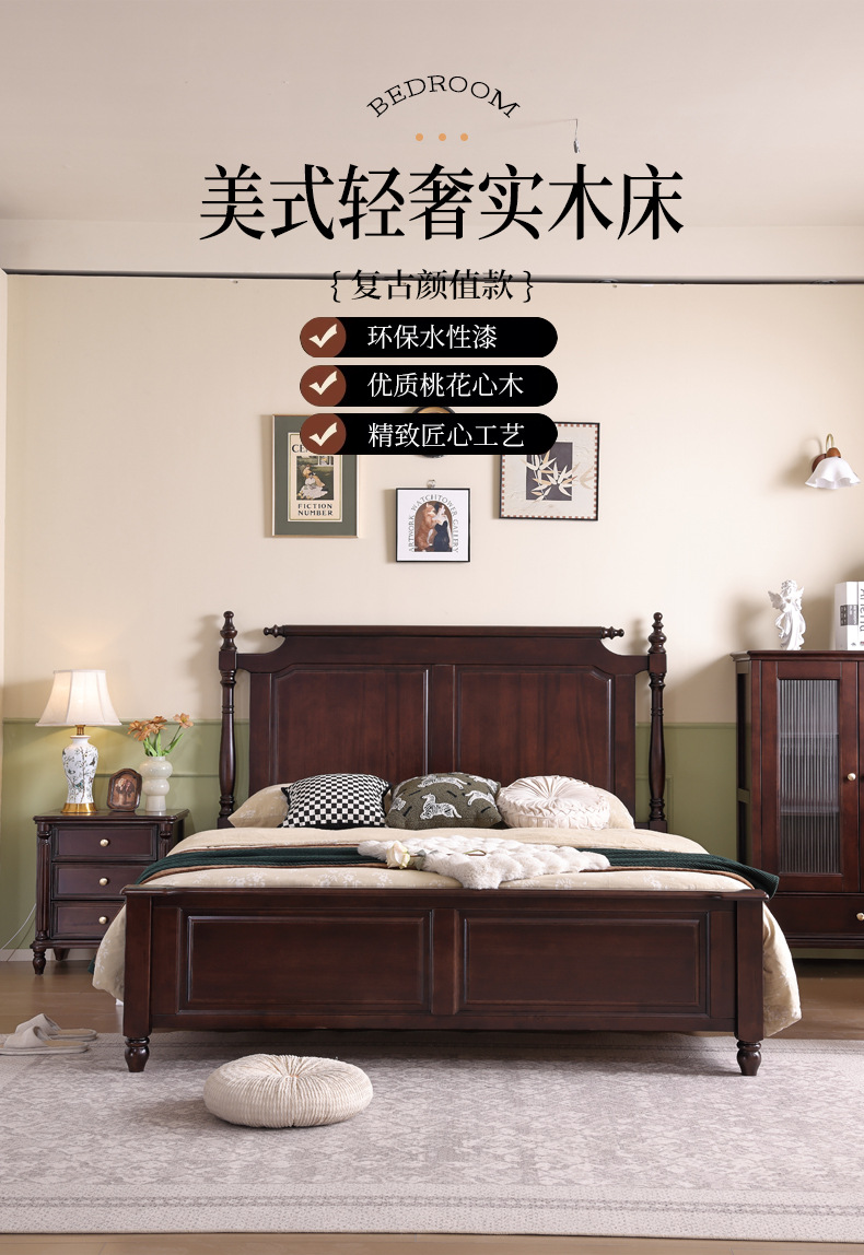 미국산 원목 침대, 블랙 호두 더블 침대, 1.8m 중세 스타일, 심플하고 아름다운 복고풍 침대, 침실 하이박스 가구스토어 가기