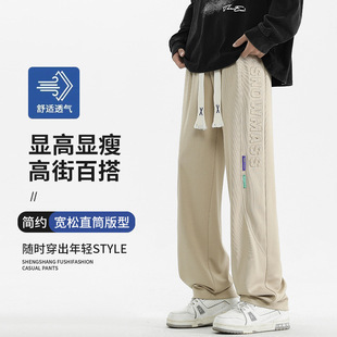 男士美式潮牌时尚百搭宽松休闲裤夏季薄款纯色运动休闲直筒阔腿裤