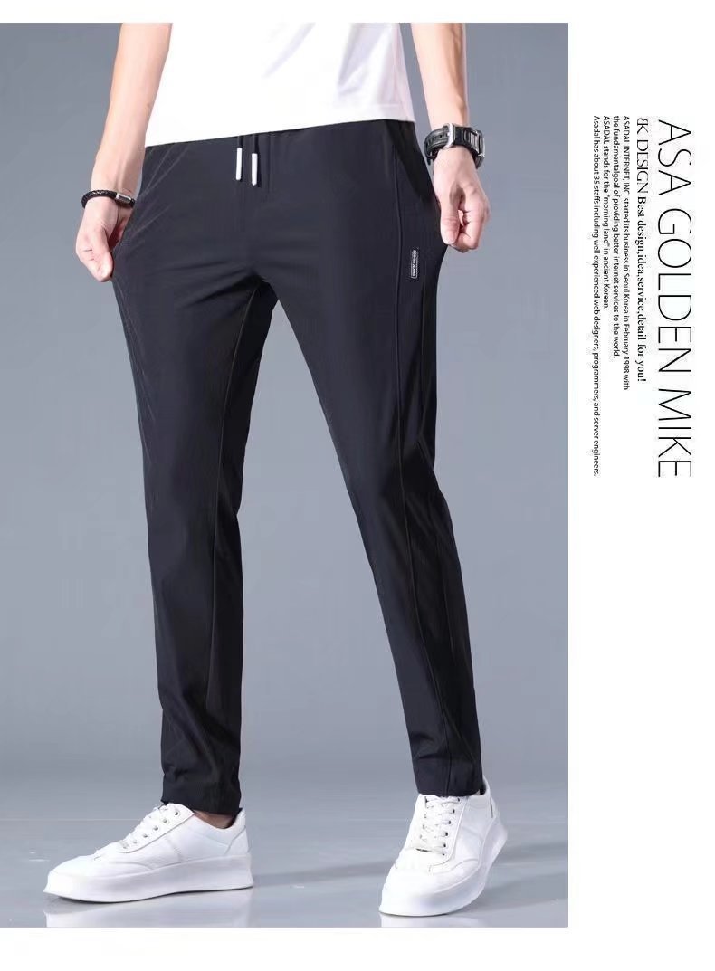 LAZADA 여름 초박형 탄성 속건성 바지 남성용 스포츠 바지 남성용 루즈하고 통기성이 뛰어난 아이스 실크 바지