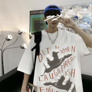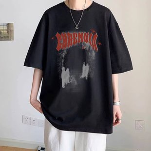 男士美式复古港风男女同款短袖T恤青少年潮流宽松舒适纯棉圆领T恤